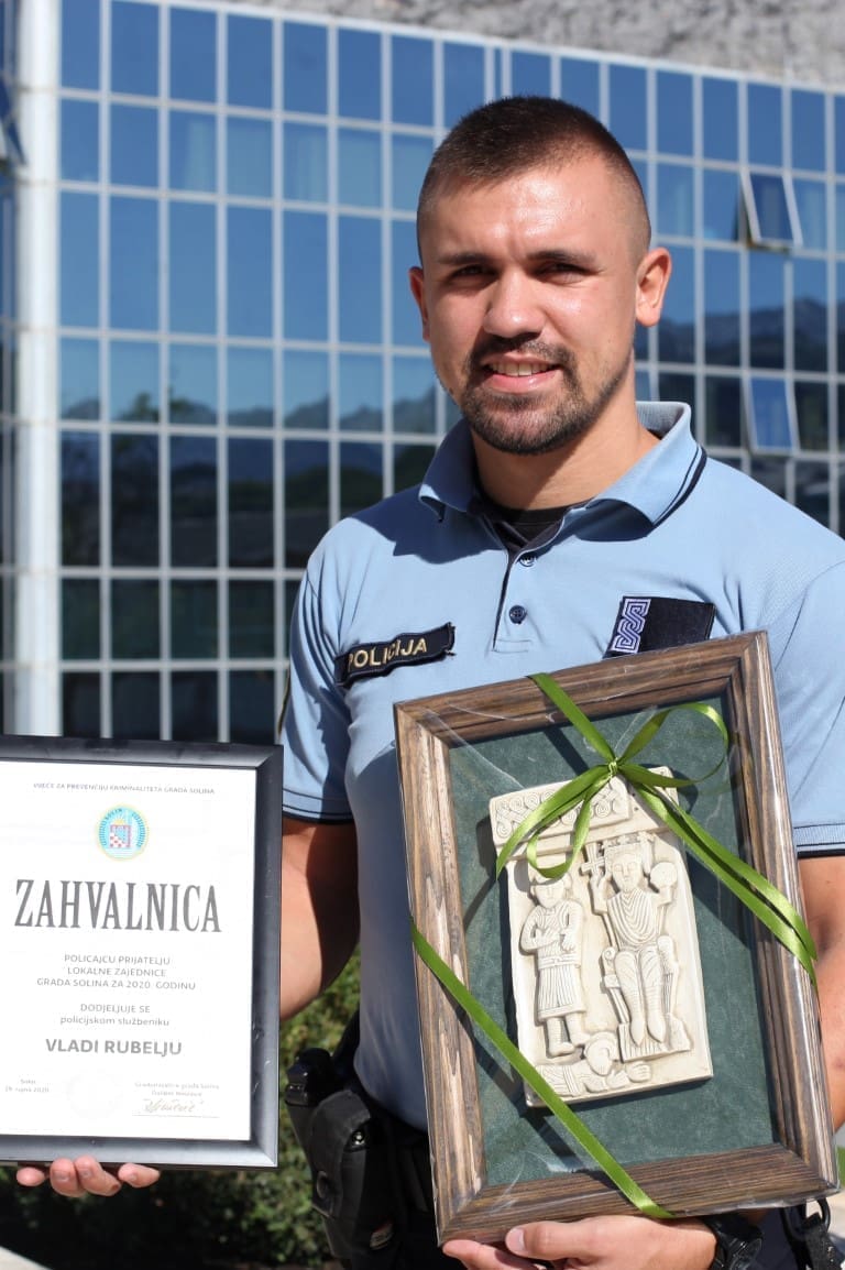 Nagrađeni policajac Vlado Rubelj, ima tek 26 godina, a već šest godina radi na poslovima prevencije u PP Solin. Odrastao je u obitelji policajaca, naime i otac je policijski službenik. Veliki dio svoje profesionalne karijere posvetio je školovanju, a prije neki dan završio je školovanje na Pravnom fakultetu u Splitu kao prvostupnik javne uprave no već planira daljnje školovanje.