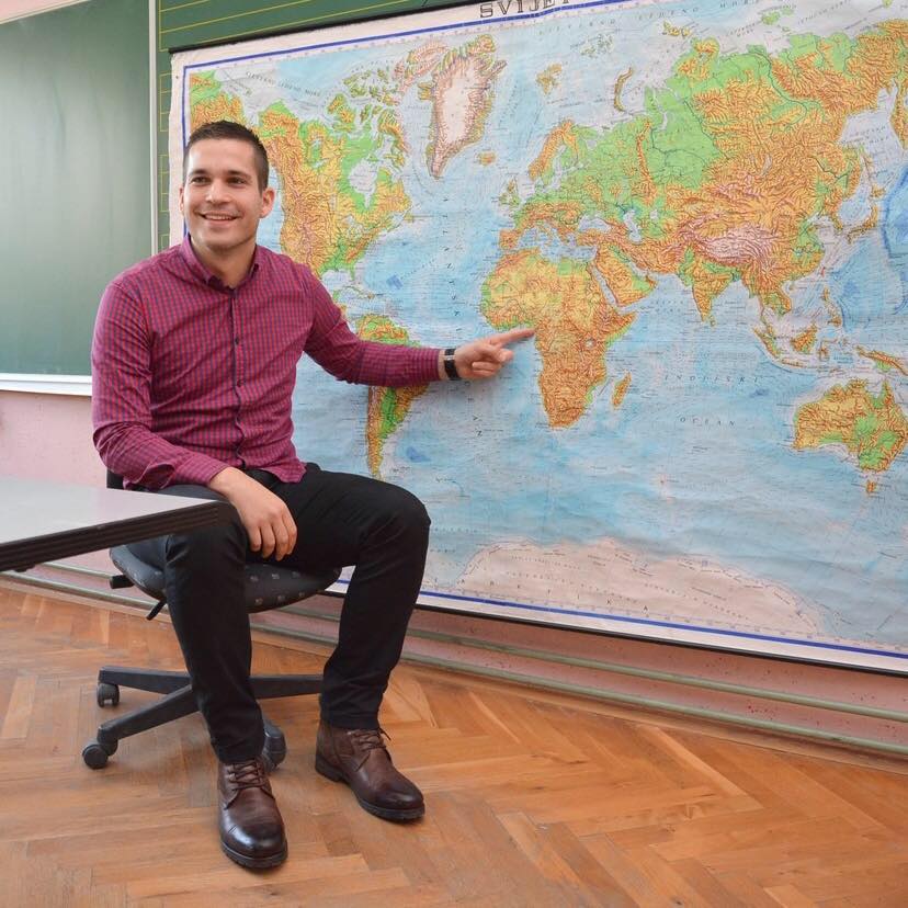 „ Još davno u petom razredu, kad sam imao prvi sat geografije, i kad je tadašnja učiteljica stavila prvi put kartu na zid, znao sam da želim biti učitelj geografije. To šarenilo boja, ta ljepota geografske karte me privukla na prvu, bila je to ljubav na prvi pogled, ljubav prema geografiji. Od tada sam počeo sanjati da ću jednom postati učitelj geografije, upoznavati svoje učenike sa planetom zemljom, otvarati im vrata i prozore svih država svijeta, i onda kad sam završio fakultet, zaposlio sam se u školi kao učitelj geografije u kojoj sam i zavolio taj predmet.