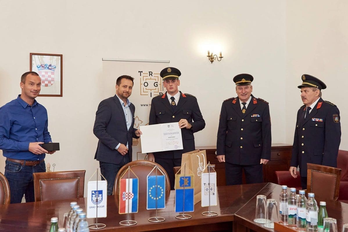 Gradonačelnik Trogira Ante Bilić danas je povodom Dana grada Trogira dodijelio prigodnu nagradu za najboljeg vatrogasca ove godine, Mateu Perkiću.