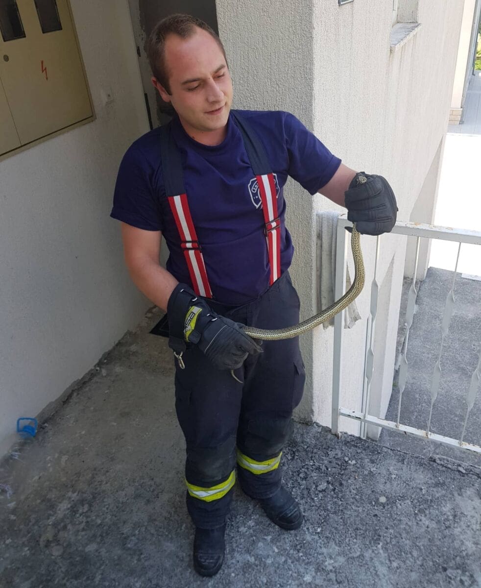 Svega je nekoliko minuta bilo potrebno spretnim vatrogascima da uhvate zmiju, a onda su je pustili u prirodu. Kišno proljeće očito je pogodovalo povećanom broju ovih zaštićenih gmazova.