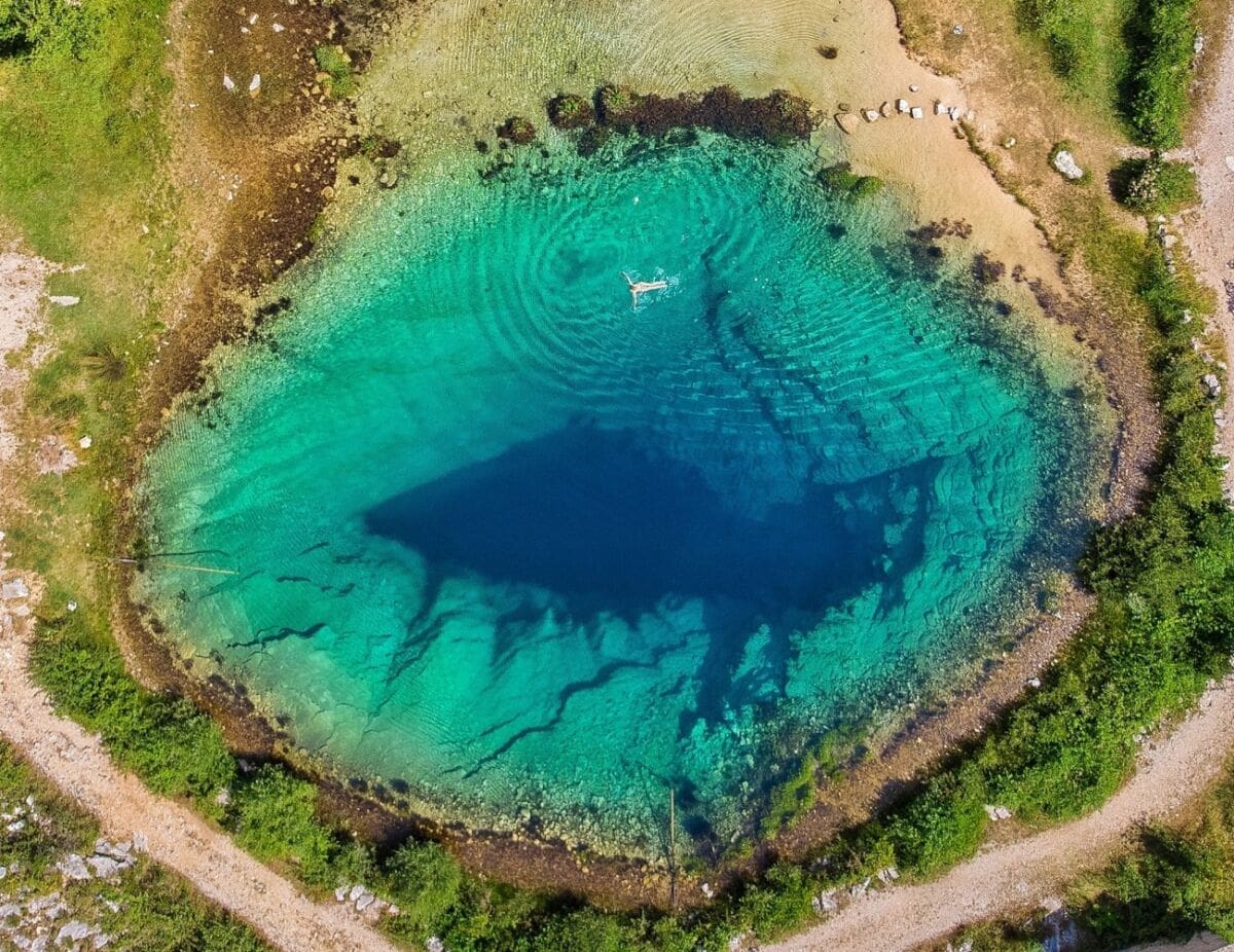 Splitski fotograf Ivan Banović u vikendu za nama boravio je na izvoru rijeke Cetine. Napravio je sjajnu seriju fotografija koju je snimao fotoaparatom i dronom. Cetina ima brojne izvore, a tri najveća su Vukovića vrilo, Batića vrilo i Veliko vrilo na istoku koje je poznato i kao izvor Glavaš. Izvori Cetine su zaštićeni kao hidrološki spomenik prirode od 1972. godine. Na ovom izvoru, čija se dubina procjenjuje na 115 metara, kupala se nekolicina turista iako je temperatura vode, baš kao i cijele godine, svega 8 Celzijevih stupnjeva. S obzirom da je u zraku bilo više od +35°C, kupanje u ledenom izvoru više je osvježenja.