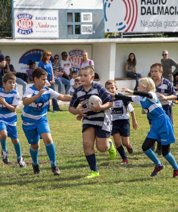 Mladi igrači i igračice u kategorijama do 8, 10 i 12 godina s puno žara pokazivali su svoje vještine u igri s ragbi loptom dok su ih sa strane glasno bodrili njihovi suigrači, treneri, mame, tate, bake i djedovi.