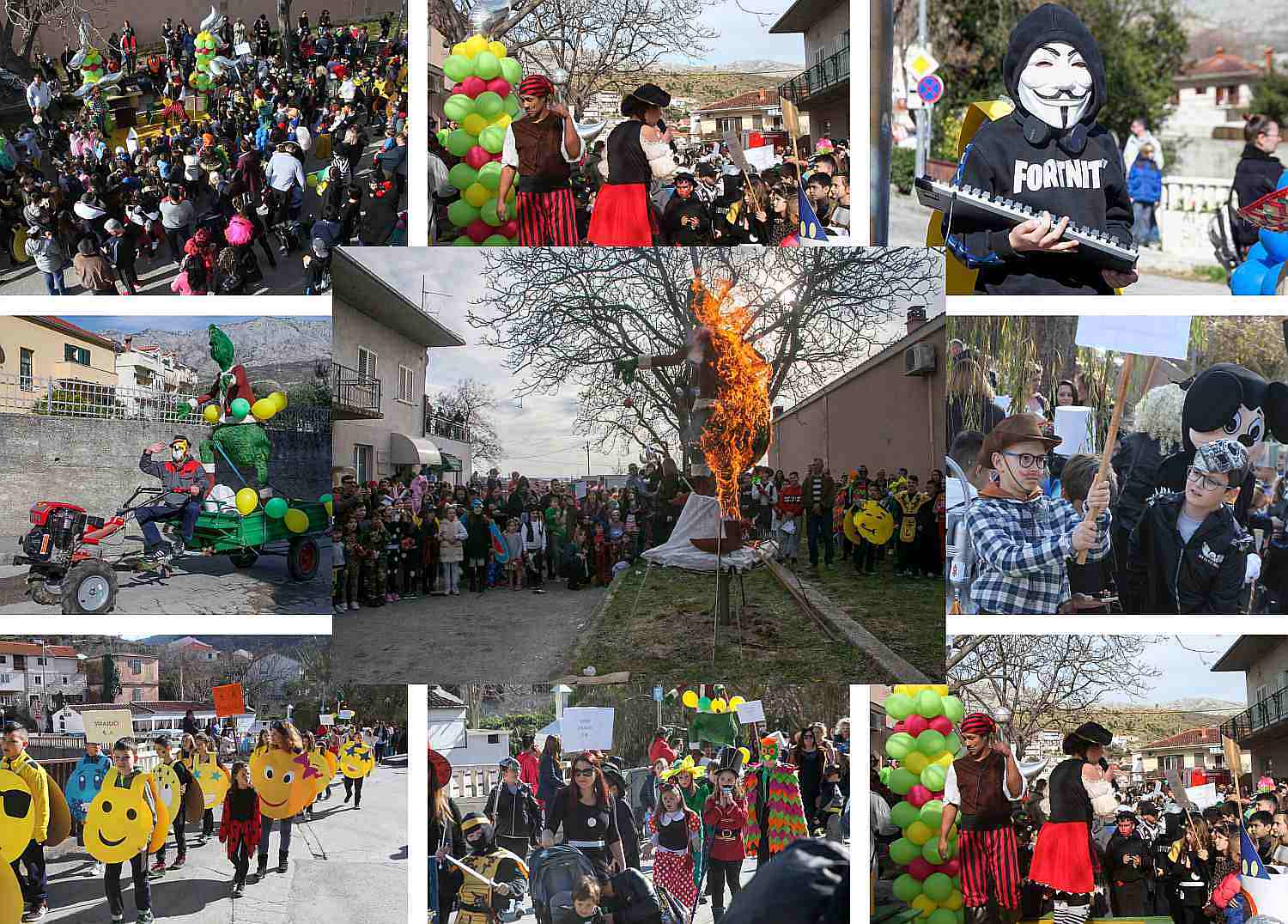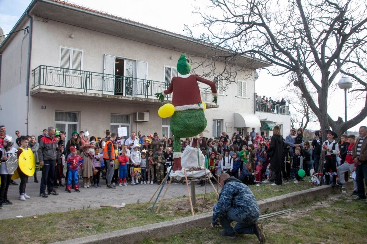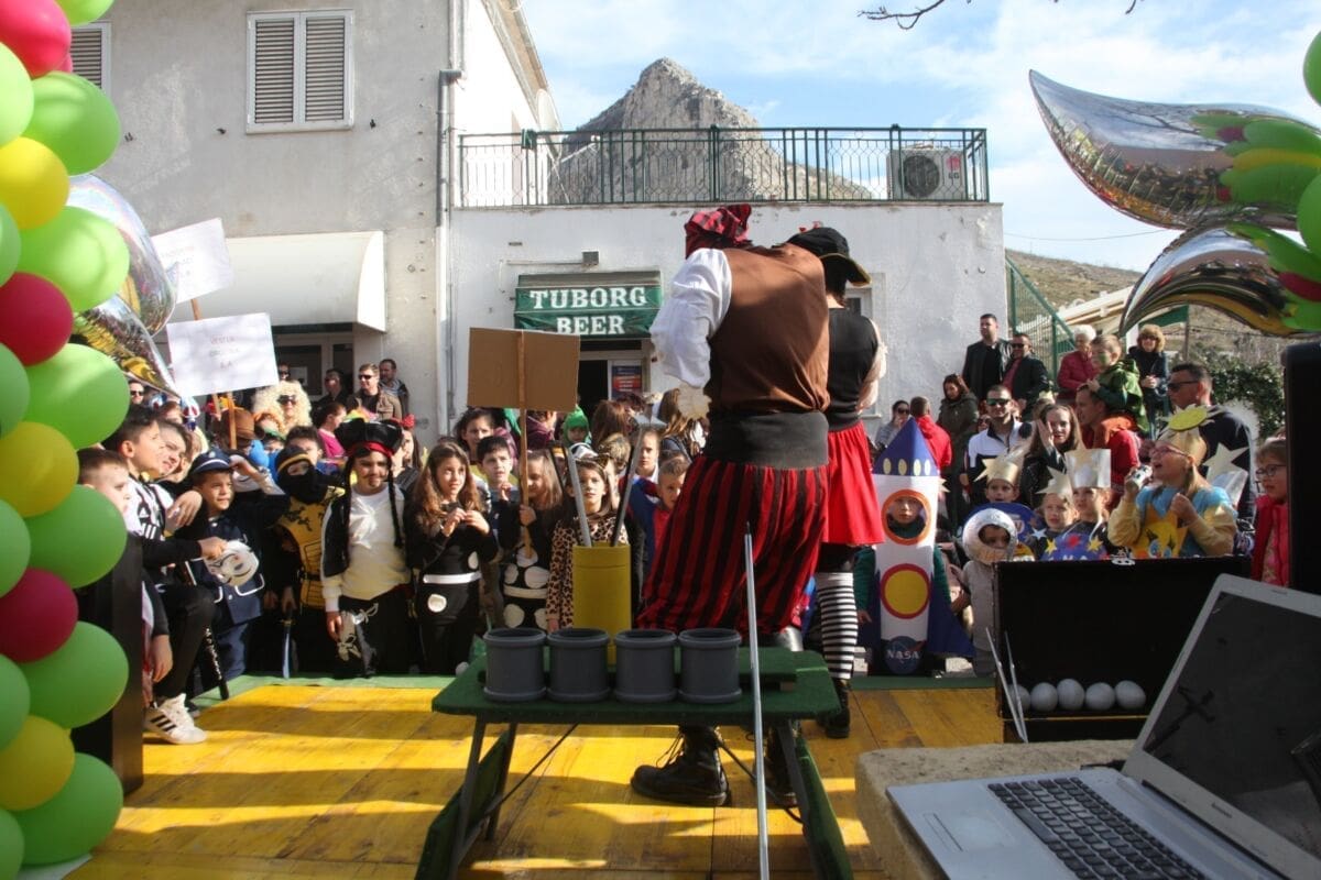 Uz nastupe dječjih vrtića, djecu su zabavljali maskote Mickey i Minnie, Limena glazba Žrnovnica -HGD Stjepan Radić te animatori Marco i Lea. Uz mnogobrojna iznenađenja, nagradile su se najbolje individualne i grupne maske. Kao i sve maškare, tako ni ove nisu prošle bez krnje. Grinča su optužili za sve nedaće prošle godine. Kriv je što su učitelji išli u štrajk, što su učenicima skraćeni praznici i što je produžena nastavna godina. Pjesme, plesa, slatkiša i krafni nije nedostajalo.