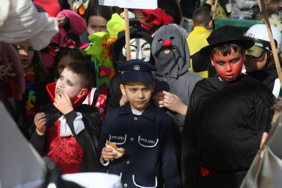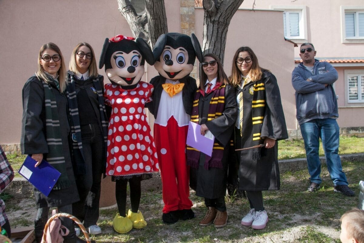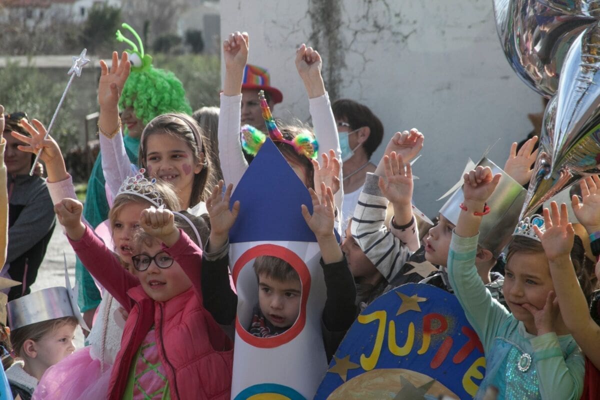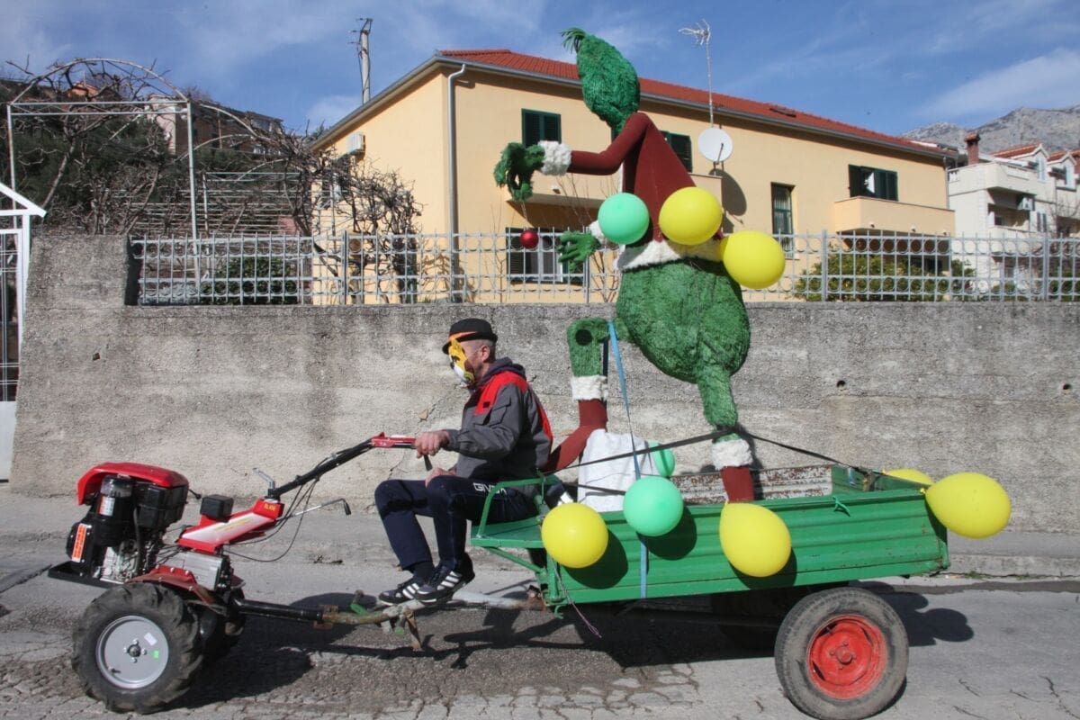 Uz nastupe dječjih vrtića, djecu su zabavljali maskote Mickey i Minnie, Limena glazba Žrnovnica -HGD Stjepan Radić te animatori Marco i Lea. Uz mnogobrojna iznenađenja, nagradile su se najbolje individualne i grupne maske. Kao i sve maškare, tako ni ove nisu prošle bez krnje. Grinča su optužili za sve nedaće prošle godine. Kriv je što su učitelji išli u štrajk, što su učenicima skraćeni praznici i što je produžena nastavna godina. Pjesme, plesa, slatkiša i krafni nije nedostajalo.
