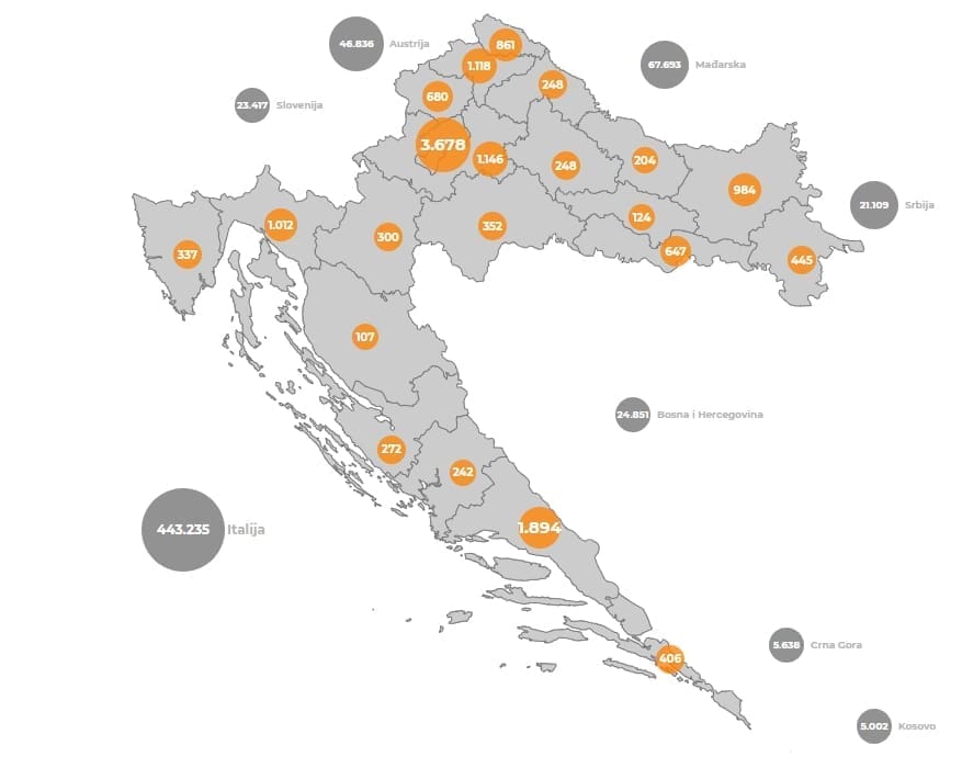 Među zaraženima 23 osobe su iz Metkovića, 19 iz Dubrovnika, po sedam iz Župe dubrovačke i Ploča, šest iz Opuzena, četiri iz Korčule, po dvije iz Konavala, Orebića i Smokvice, po jedna iz Blata, Lumbarde, Kule Norinske, s Mljeta, iz Stona te iz Trpnja, kao i dvije osobe koje nemaju prebivalište u županiji.