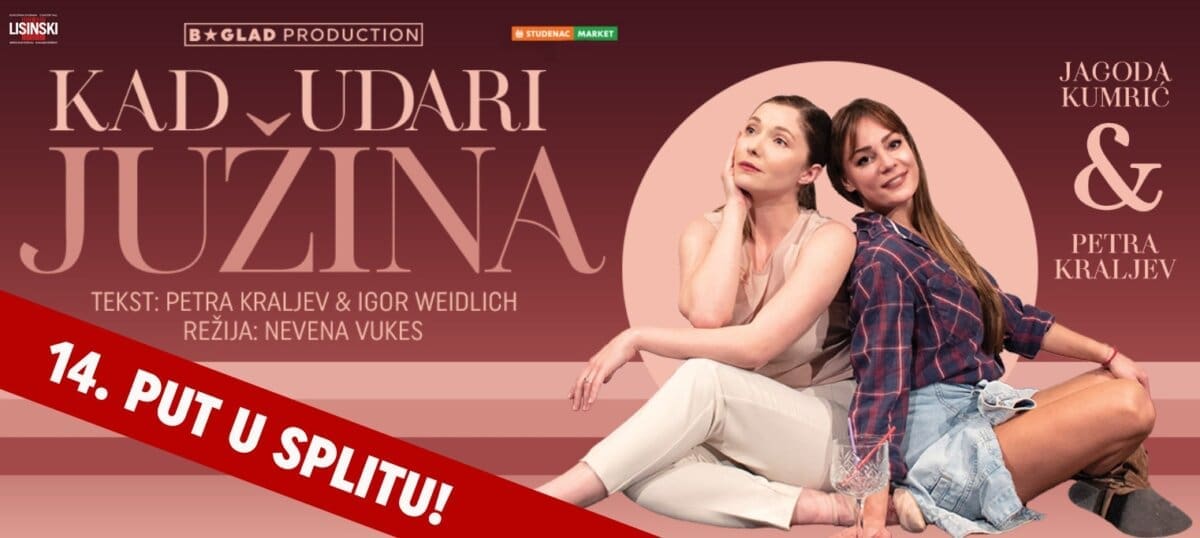 Komedija o kojoj se najviše govori u posljednje dvije godine svakako je "Kad udari južina" u izvedbi Jagode Kumrić i Petre Kraljev, koja ujedno i potpisuje tekst za ovu komediju.