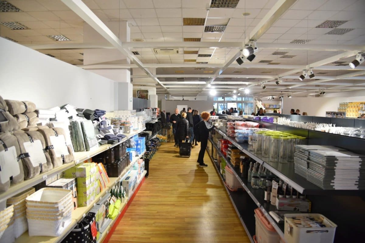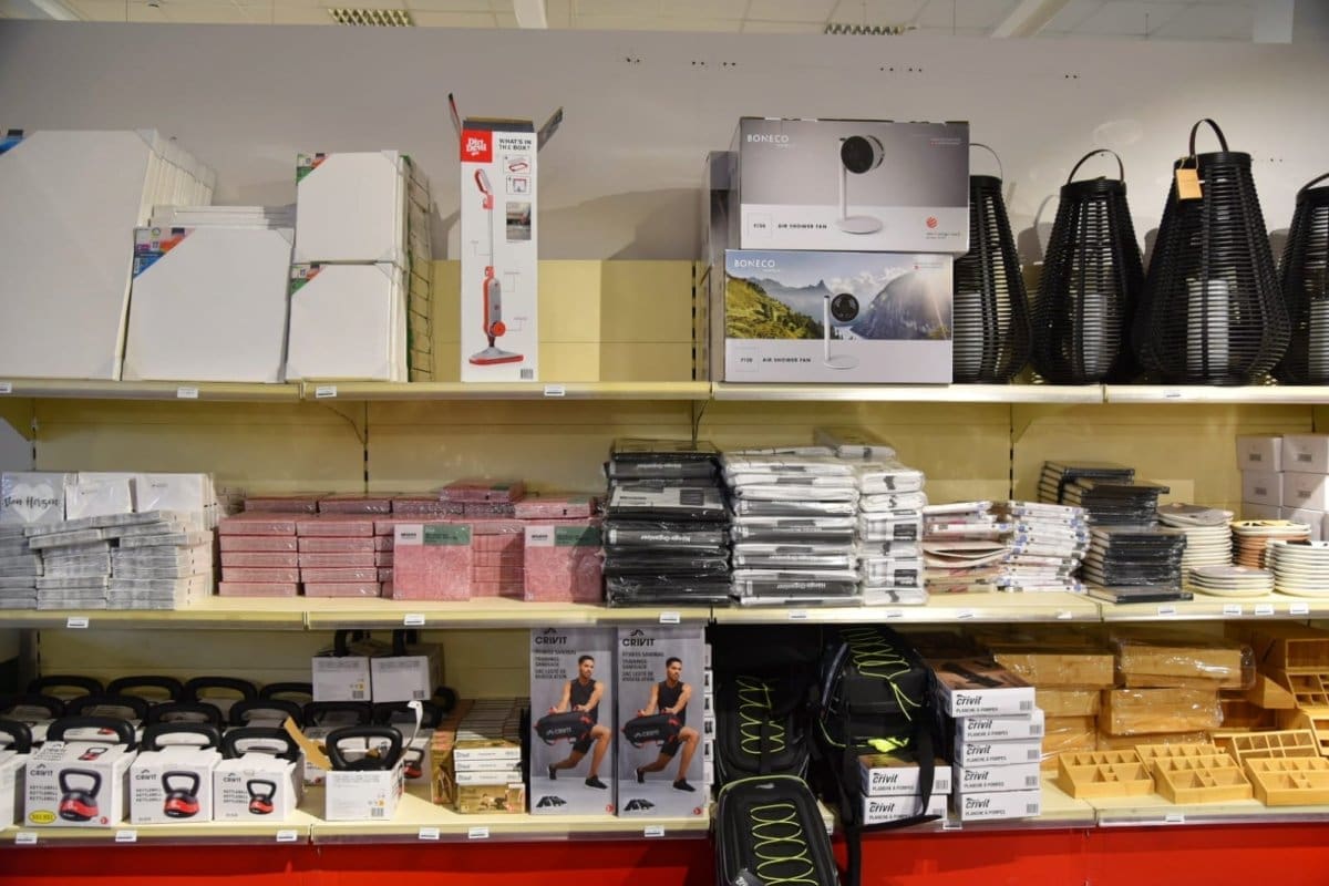 Asortiman trgovine podijeljen je u dva dijela: kućanstvo i široka potrošnja te igračke i zabava. U skorije vrijeme najavljuje se otvaranje drugog dijela trgovine gdje će se nuditi odjeća, obuća i uredska oprema po niskim cijenama.