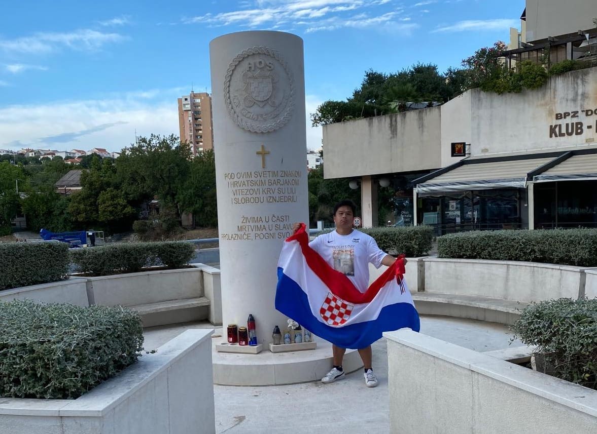 "Fala moj prijatelju, napokon je naša prava zastava ovdje sa mnom i spomena na HOS-a. Netko želi maknuti slova pod HOS-om, ali to nećemo zaboraviti, za sve tu je 'Za Dom spremni'" - napisao je Kinez.