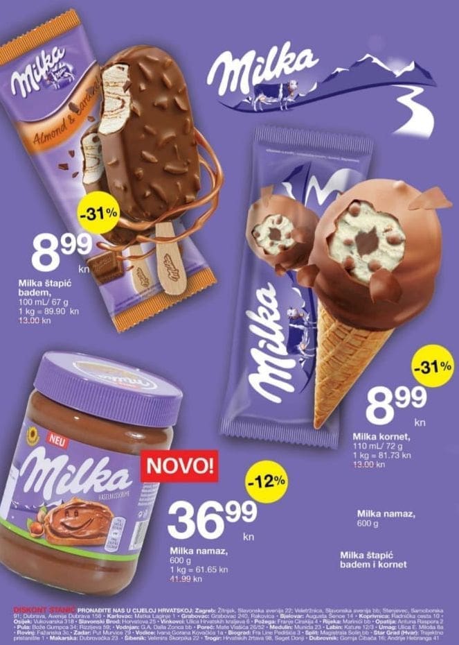 Osim novih Milka sladoleda u ovom katalogu pronaći ćete još jedan novitet: Milka čokoladni namaz od lješnjaka, jedva smo dočekali da ovaj popularni novitet napokon stigne na naše tržište i na naše police!