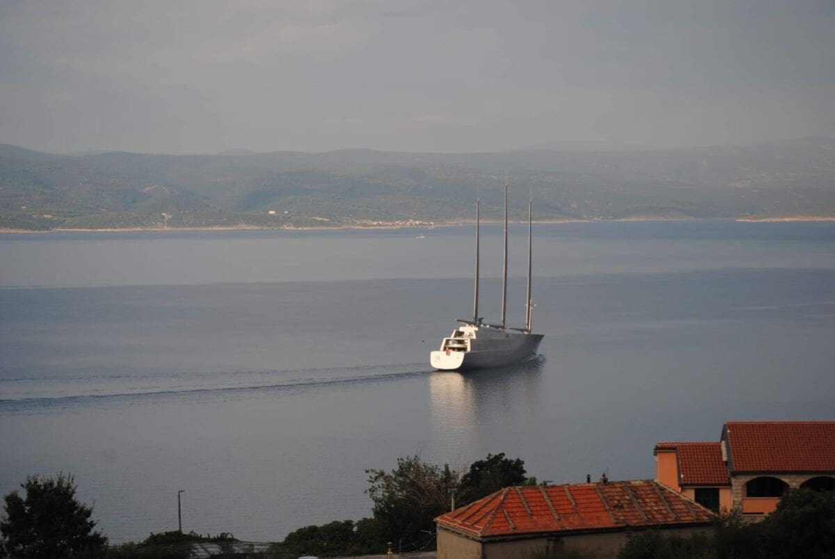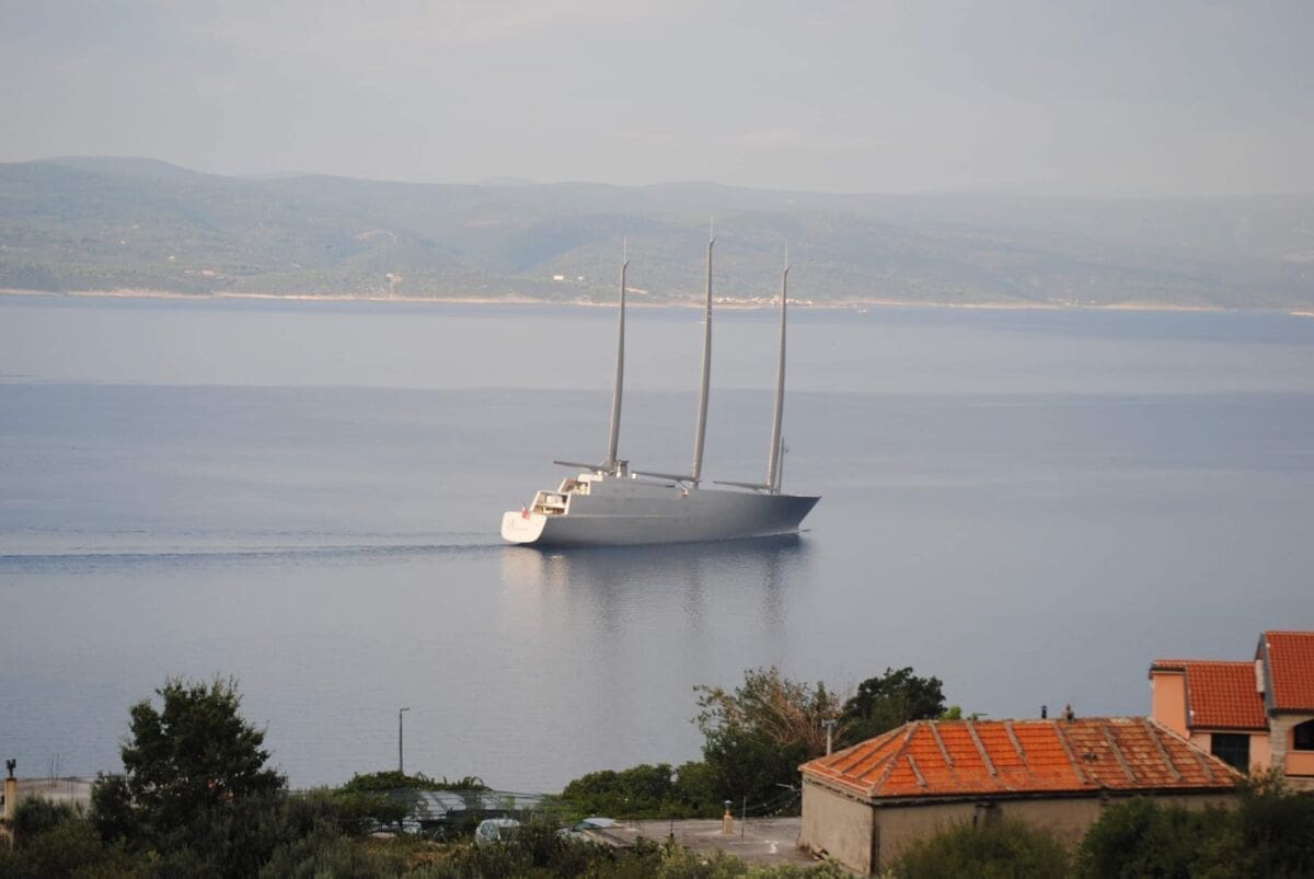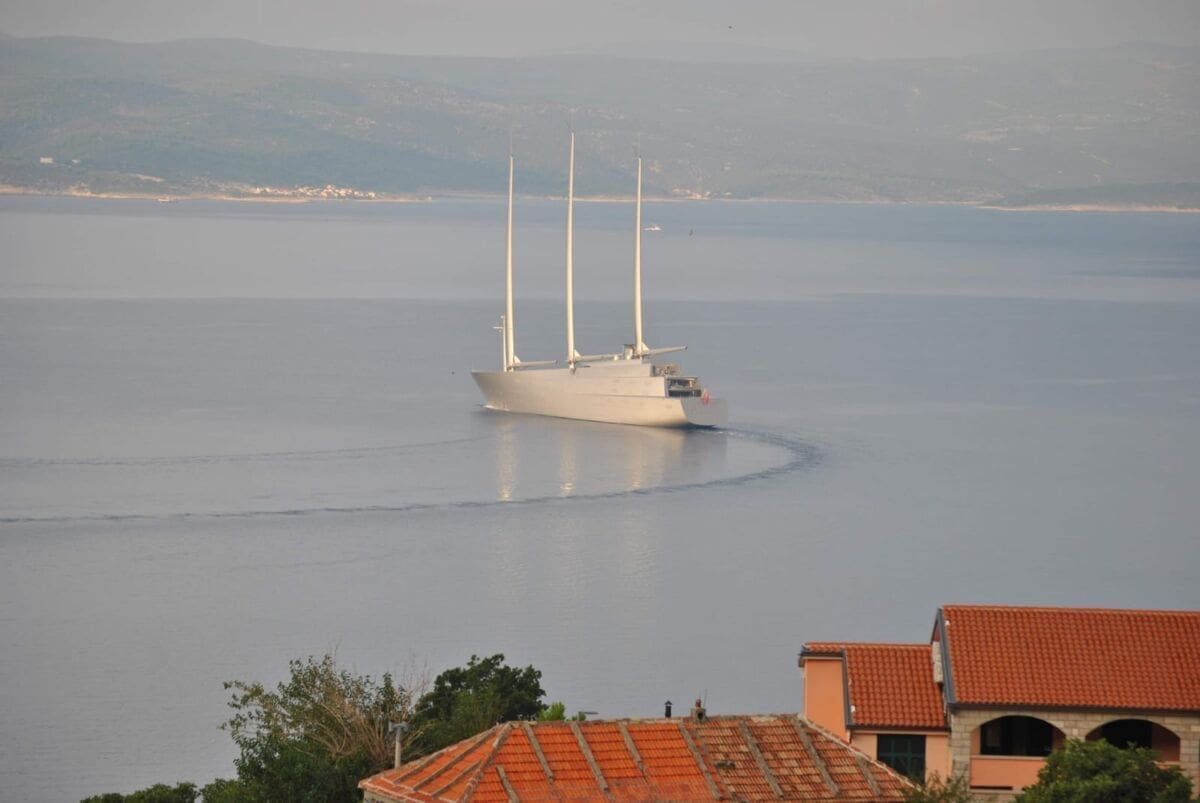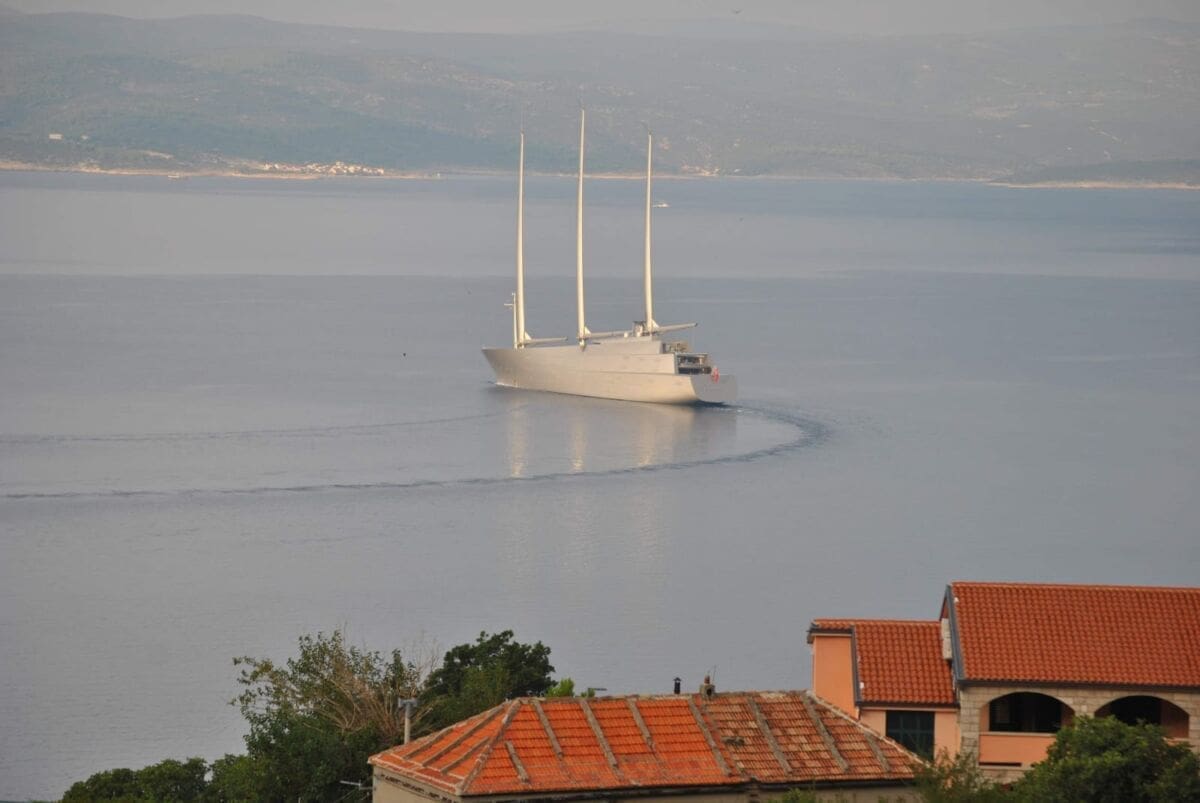 U akvatorij Brela je tijekom srijede uplovila Jahta A, duga preko 100 metara i dizajnirana 2015. godine od francuskog dizajnera Philippea Starcka za ruskog milijardera Andreja Meljničenka.