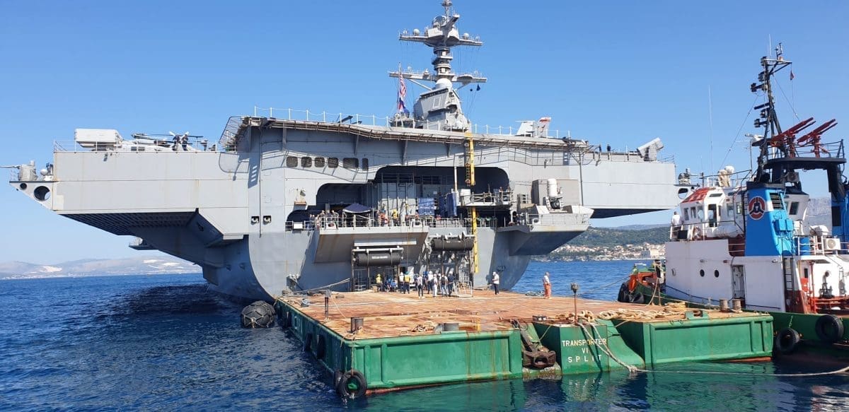 Ogromni brod koji privlači poglede Splićana i turista najveći je ratni brod u povijesti. Dugačak je više od 330 metara, a visok 76 metara, poput solidnog nebodera, s 25 paluba.