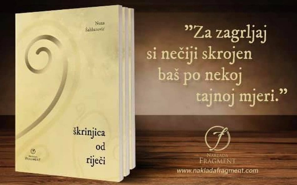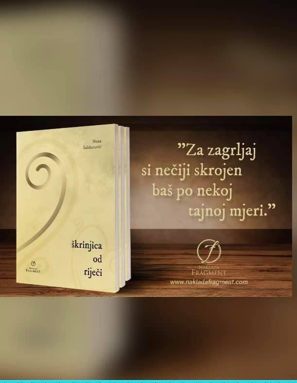 Zbirka tekstova naslova „Škrinjica od riječi“ autorice Nene Šahbazović je ukoričeno izdanje njeni tekstova koje objavljuje na društvenim mrežama (Facebook i Instagram), a koje su jedva dočekali svi njeni pratitelji na društvenim mrežama (kojih je preko 62.000) , poznanici, prijatelji i obitelj. I sam nakladnik je ponosno dočekao izdanje ove zbirke iznimno se radujući ostvarenom suradnjom sa gospođom. Nenom.