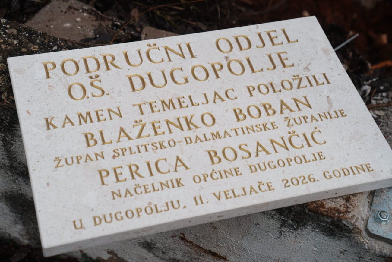 U srijedu ujutro ispred Osnovne škole Dugopolje, župan Blaženko Boban i načelnik Općine Dugopolje Perica Bosančić svečano su položili kamen temeljac za gradnju područnog odjela škole.