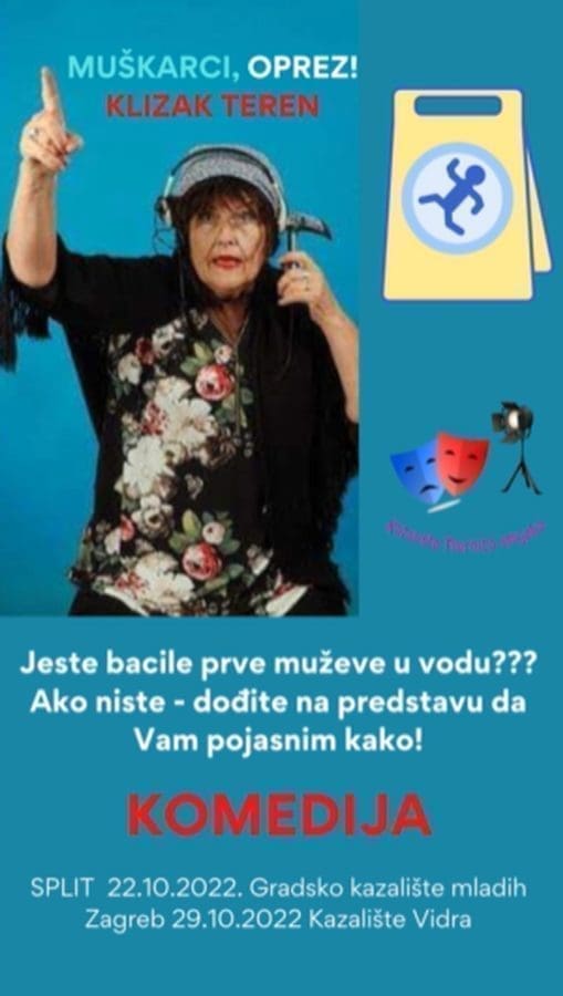 Ona, primjerice svog prvog muža nije bacila u vodu, a kako stvari stoje to niti ne namjerava. Jer za nju je pisao „Lude žene“ kao i „Vesele žene Hrvatske“, kao i desetak komedija za odrasle, edukativnih predstava i predstava za djecu i mladež. Svakako, dođite na predstavu, uživajte u smijehu i satiri.