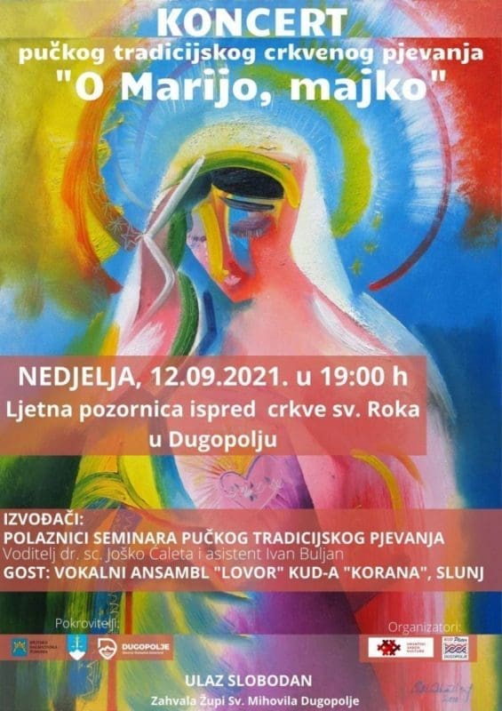 Seminar i koncert „O Marijo, majko“ bit će održani uz poštivanje svih epidemioloških mjera. Održavanje programa omogućili su Općina i TZ Dugopolje te Splitsko-dalmatinska županija.