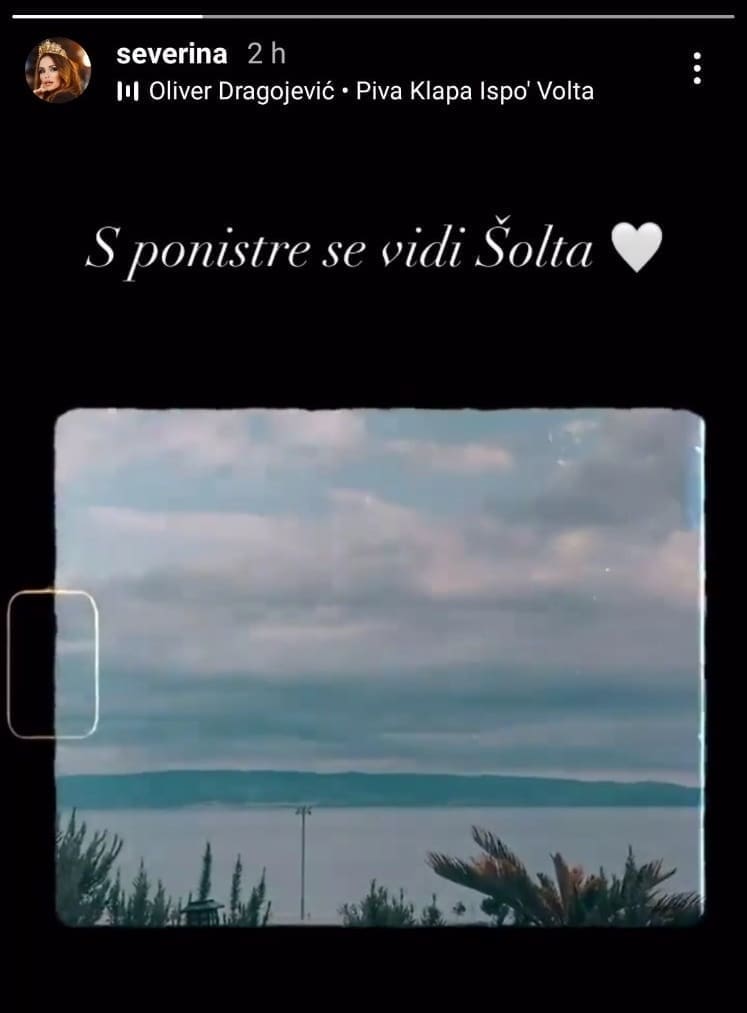 Severina Kojić danas se popodne oglasila na svom Instagramu. Pjevačica je objavila Instagram story iz Splita, snimljen s terase na kojoj se vidi more, a sudeći po pjesmi koju je objavila, i Šolta.
