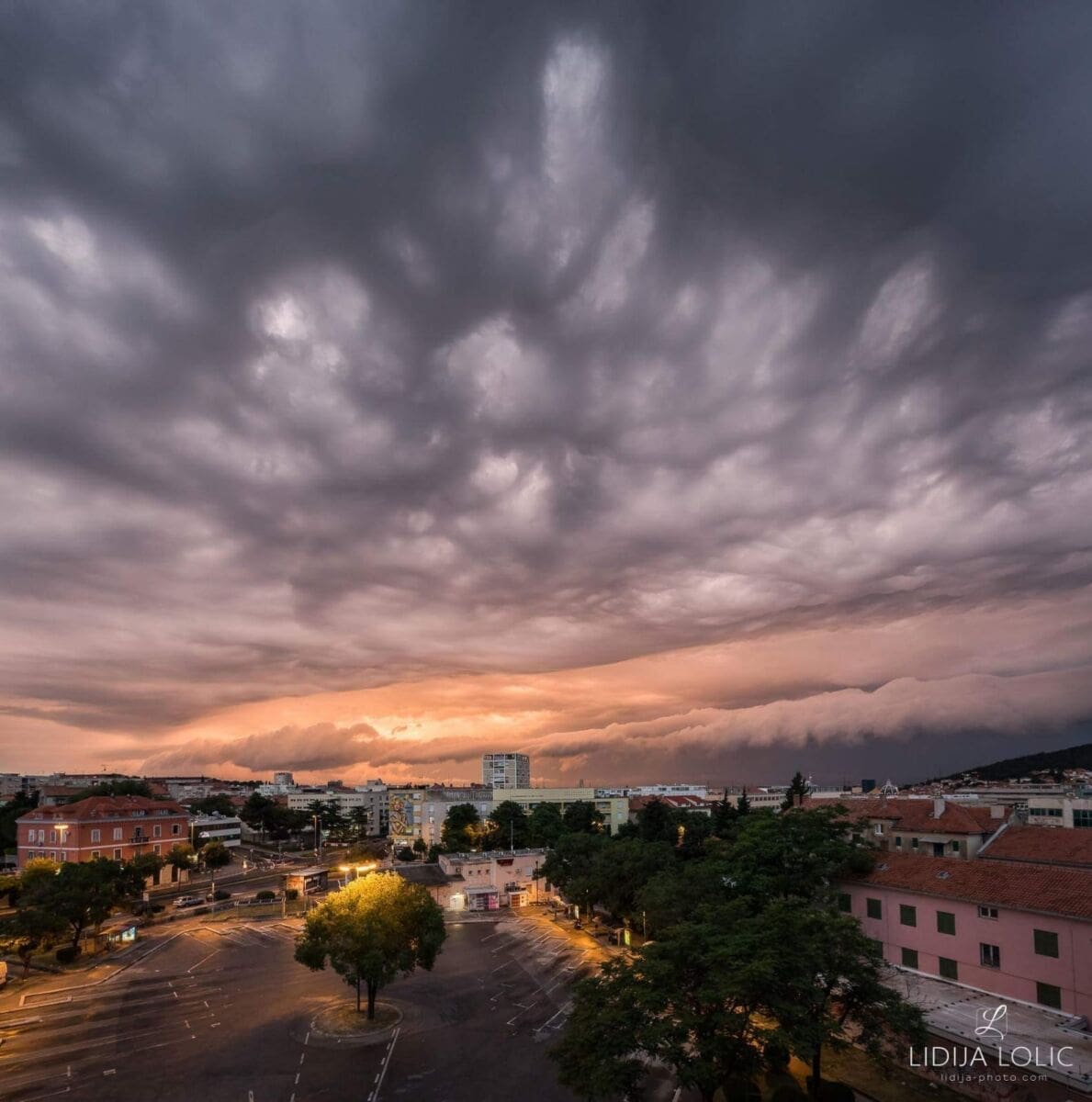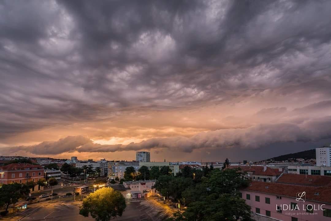 Lijep prizor imali su jutros stanovnici šireg splitskog područja. Roll cloud stizao je s mora obasjan izlazećim suncem, no olujni oblaci su se raspali dolaskom nad obalu te su donijeli tek slabu kišu.