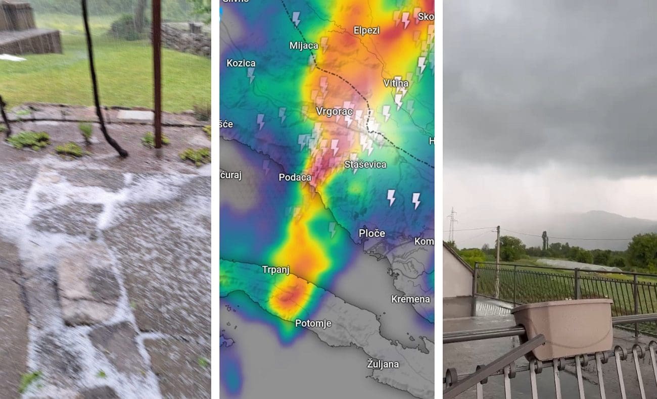 Nakon što je jako grmljavinski nevrijeme zahvatilo velik dio srednje Dalmacije u ranim popodnevnim satima, grmljavinski sustav nastavio se kretati prema jugu. Tako je snažno nevrijeme zahvatilo okolicu Imotskog i Vrgorca gdje je mjestimice bilo tuče. Zasad nema izvještaja o tome da je tuče napravila štete.