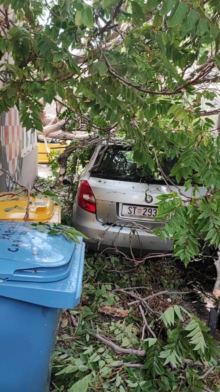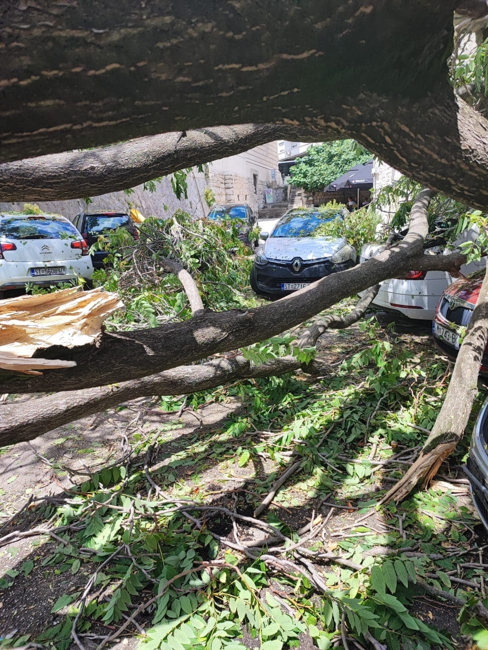Više od četiri sata nakon što je nevrijeme pogodilo Split, stanovnik Zlodrine poljane, u samom centru grada, i dalje ne može ući u svoj dom. Razlog – srušeno stablo koje blokira ulaz i prijeti sigurnosti prolaznika.