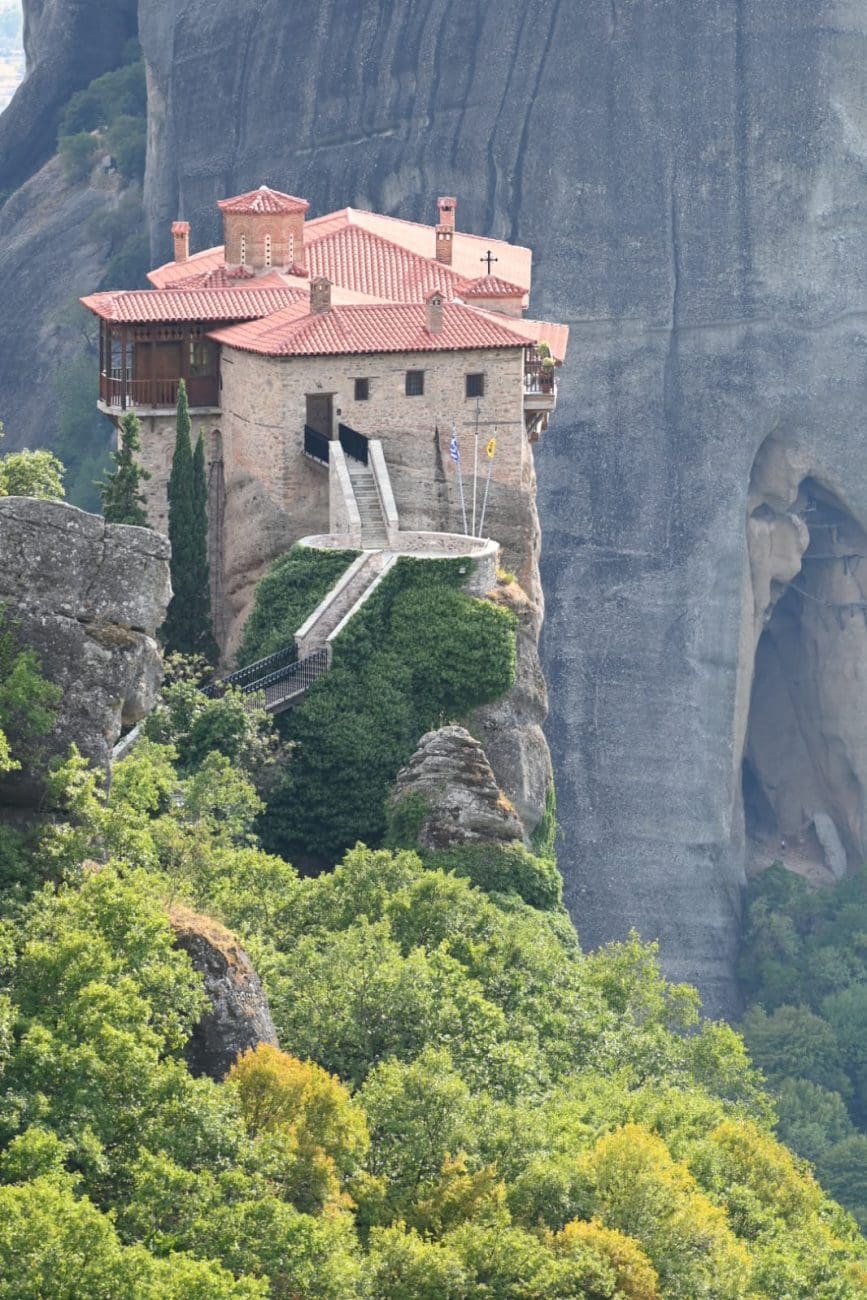 Legenda kaže da je osnivač Velikog Meteorona, sveti Atanasije iz Meteora, na stijenu stigao „nošen orlom“. Naravno, riječ je o simboličnom opisu, ali redovnici su vjerovali da je njegova prisutnost na toj litici božanski znak.