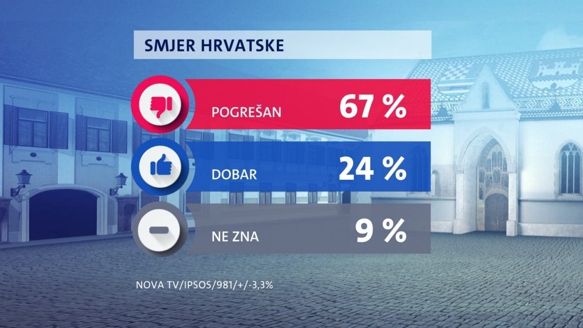Nema bitnih promjena kod građana kada ih se pita što misle o radu vlade, ali i o smjeru kojim ide Hrvatska. Tako i dalje 59 posto građana ne podupire rad vlade, a njih 34 posto ga podupire. Ne zna njih 7 posto.