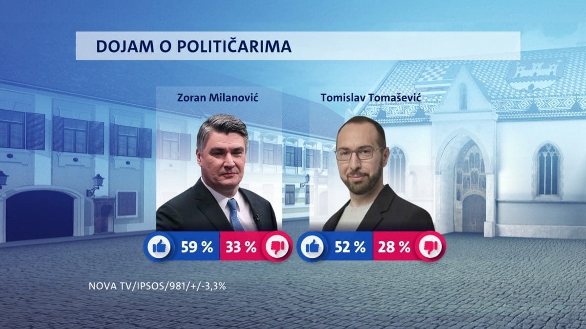 Zoran Milanović opet je najpopularniji političar u zemlji. O njemu pozitivan dojam ima 59 posto građana, a njih 33 posto ne dijeli to mišljenje. I tu predsjednik bilježi rast potpore.