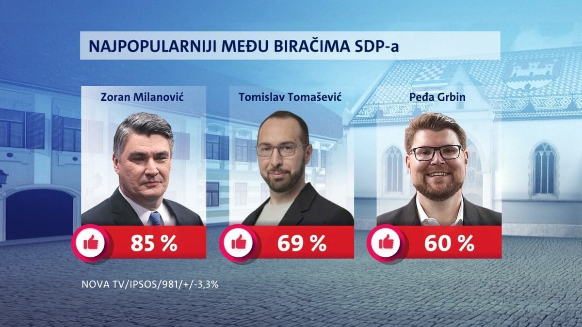 Kod SDP-ovih birača Milanović je pak prvi izbor s potporom od 85 posto, zatim je tu Tomislav Tomašević sa 69 posto i Peđa Grbin sa 60 posto.