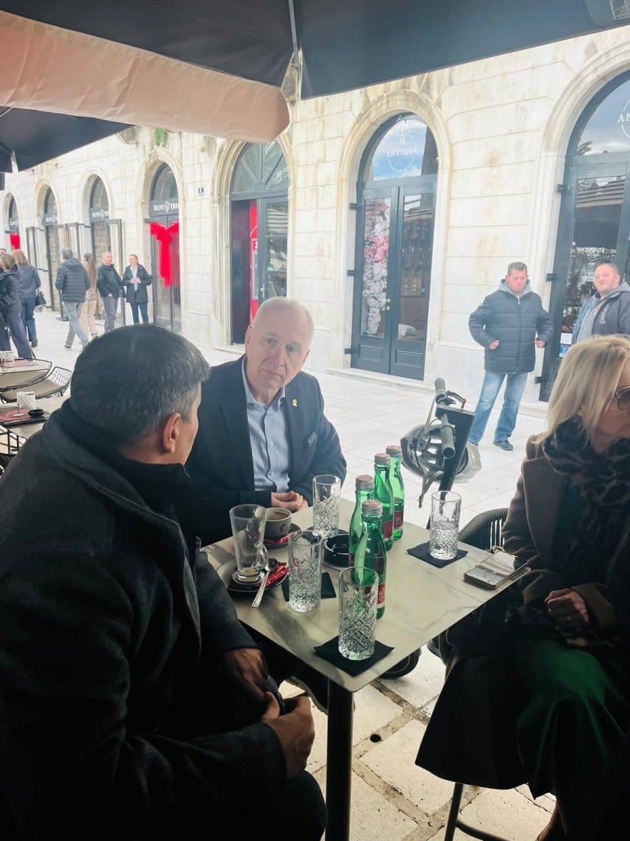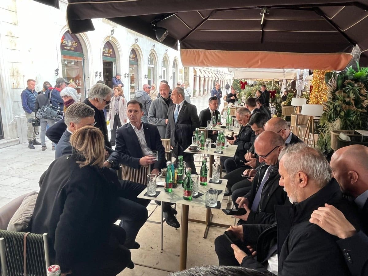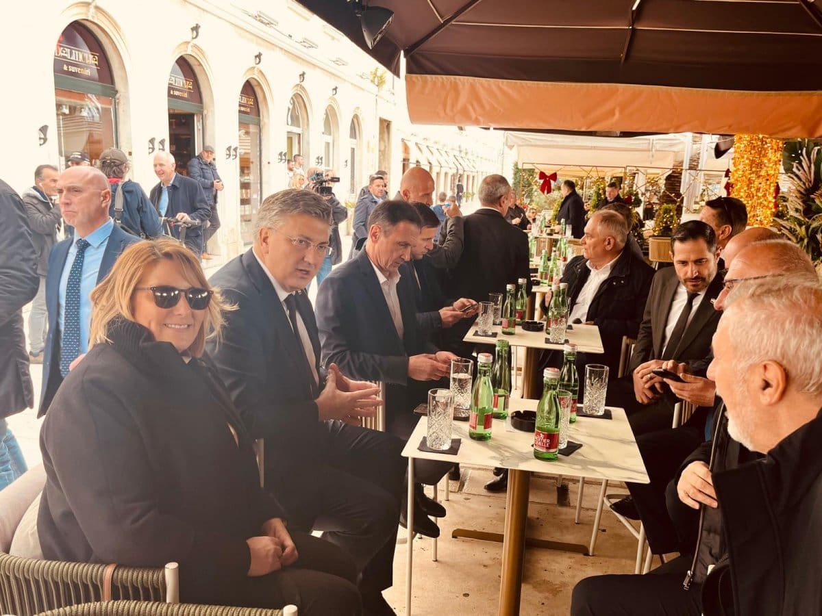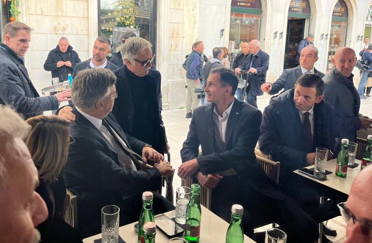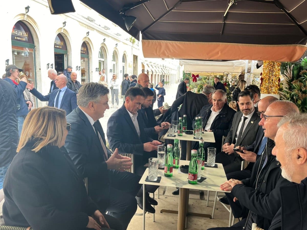 Nakon skupa na Gripama, predsjednički kandidat Dragan Primorac, predsjednik Vlade RH i Hrvatske demokratske zajednice Andrej Plenković u društvu Ante Sanadera predsjednika ŽO HDZ SDŽ i Tomislava Šute predsjednika splitskog HDZ-a, ministara Tonća Glavine, Branka Bačića, Gordana Grlića Radmana, župana Blaženka Bobana, rektora Dragana Ljutića, popili su kavu na splitskoj Rivi.