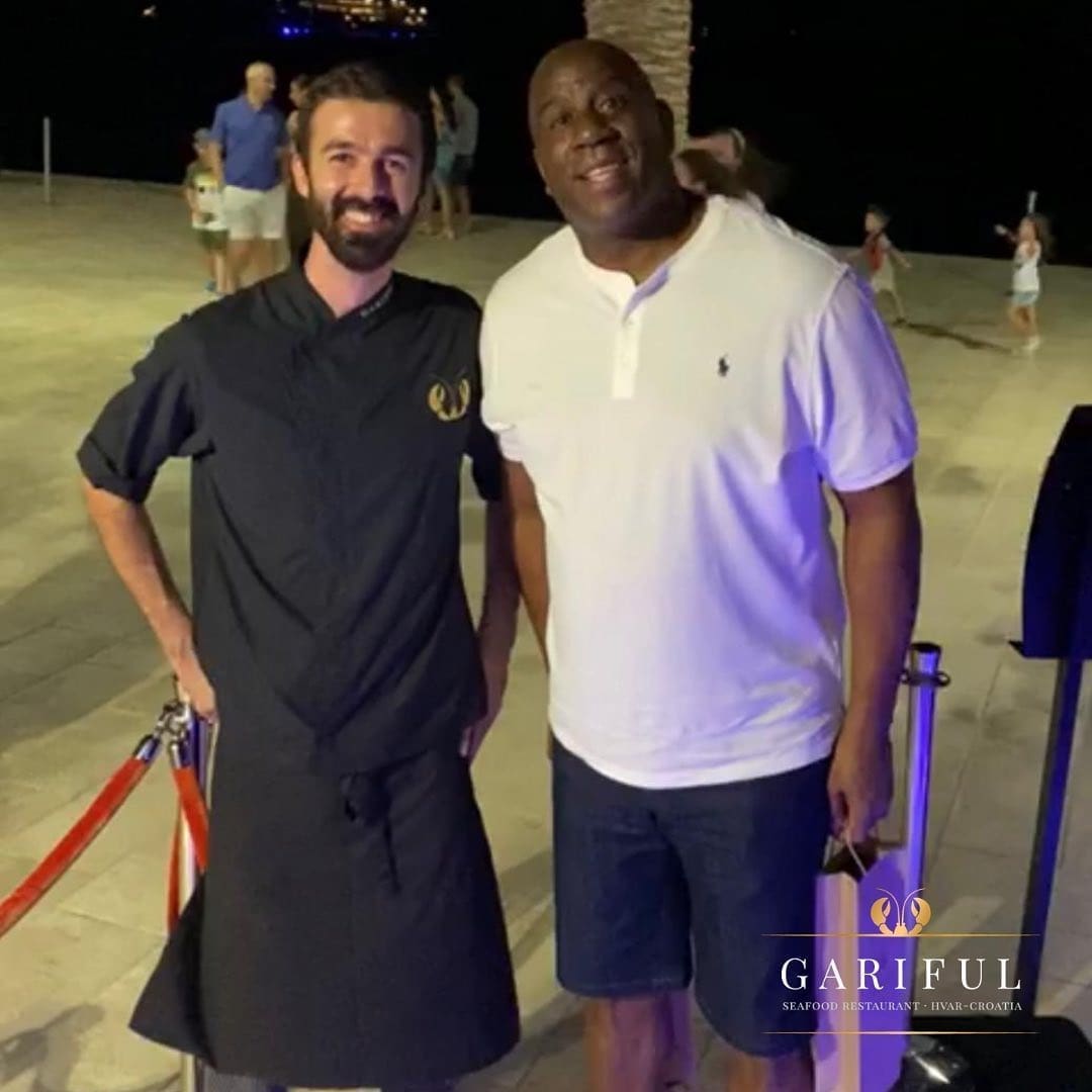 Magic Johnson, hvala ti na povjerenju, i veselimo se ponovnom dolasku jer si nas osvojio svojom karizmom i osmijehom", napisali su na stranici poznatog hvarskog restorana.