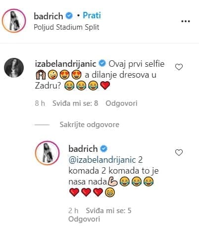 - Ovaj prvi selfie. A dilanje dresova u Zadru? - napisala je Izabel.