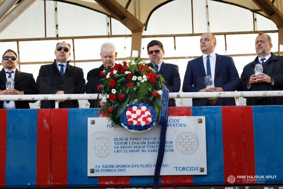 Nakon toga delegacija HNK Hajduk na čelu s predsjednikom Uprave Marinom Brbićem, predsjednikom Nadzornog odbora Benjaminom Perasovićem te članovima Sergijem Popovićem, Markom Mustapićem, Ninom Martinićem i predsjednikom Skupštine Vinkom Radovanijem položila je vijence na spomen ploču na sjevernoj tribini poljudskog stadiona, za sve navijače i članove Hajduka poginule u Domovinskom ratu.