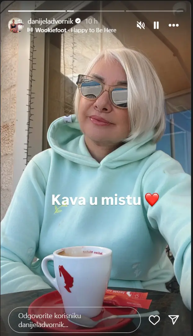 Ljudi, evo me kući i stvarno vrijedi ona - svugdje pođi, ali kući dođi. Baš sam takav tip, svugdje mogu otići, ali uvijek ću se sa srećom vratiti kući, poručila je Danijela Dvornik u četvrtak iz svog doma na otoku Braču.