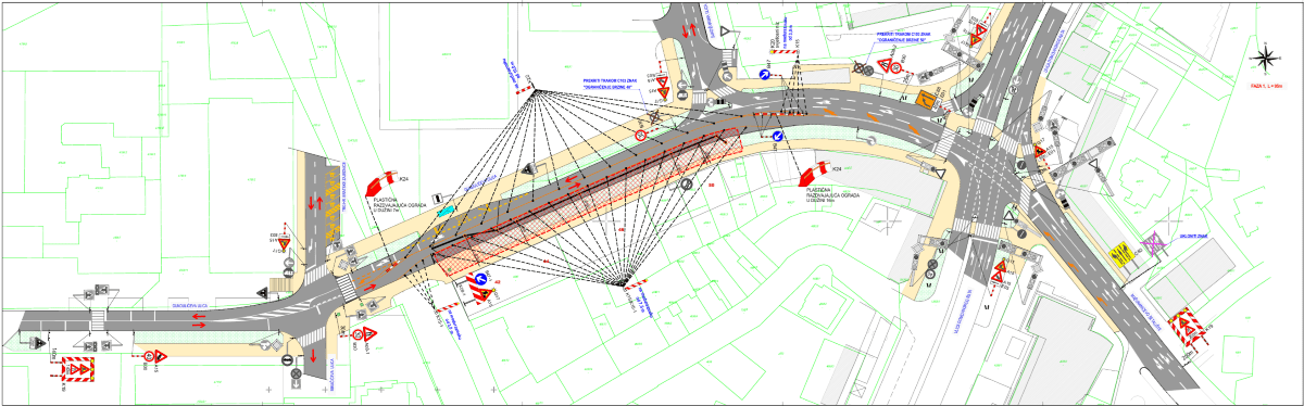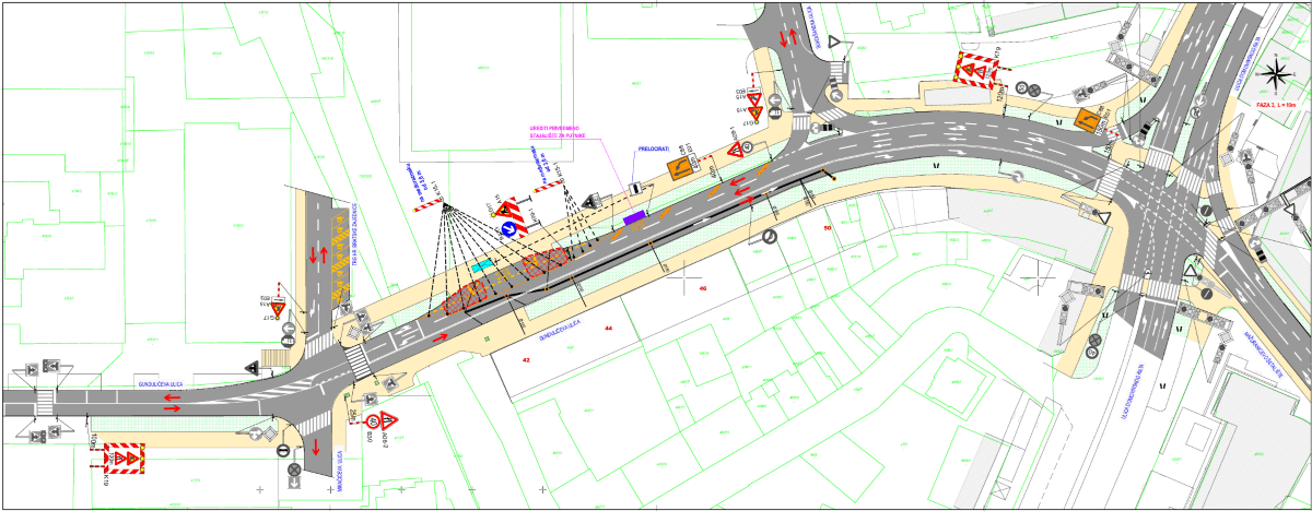 Tijekom izvođenja radova u fazi 1 pješacima će se omogućiti nesmetan prolaz pješačkom površinom između zone radova i stambenog niza u Gundulićevoj ulici od kućnog broja 42-50 u širini od 2 metra. Prethodno radovima u fazi 3 uredit će se privremena autobusna stanica i stajalište putnika.