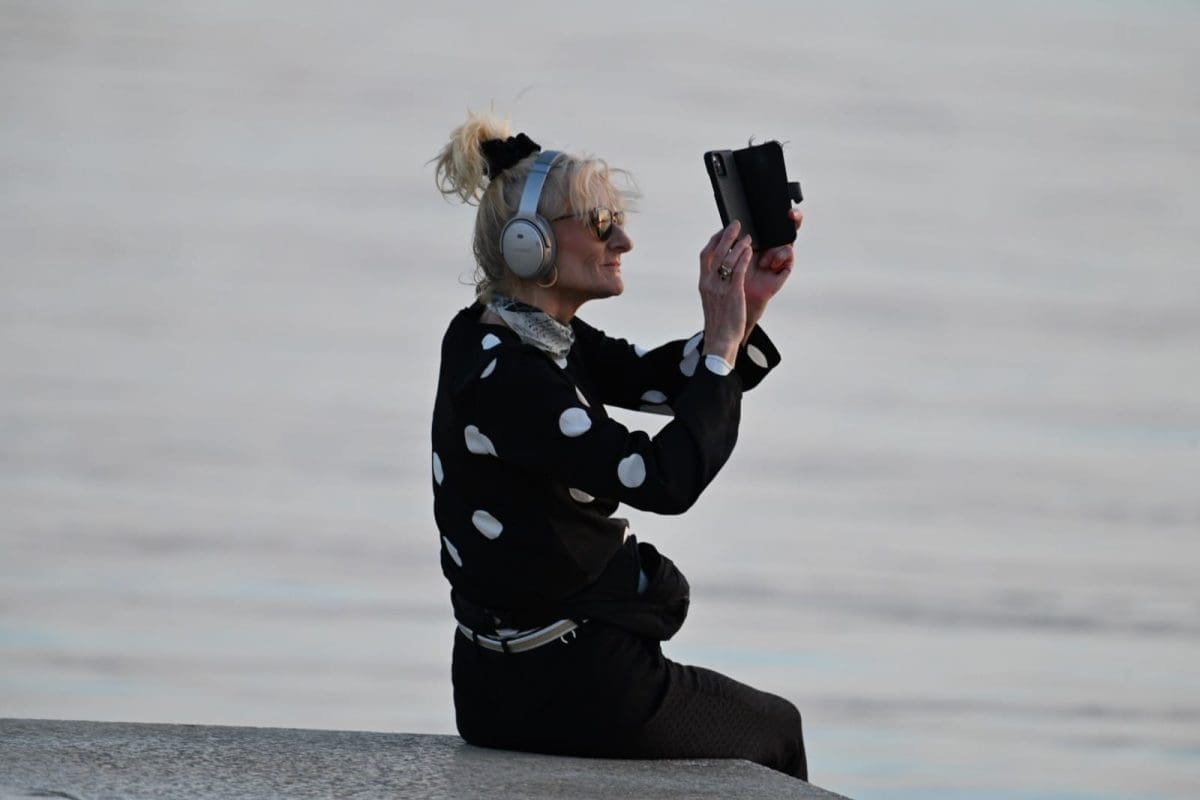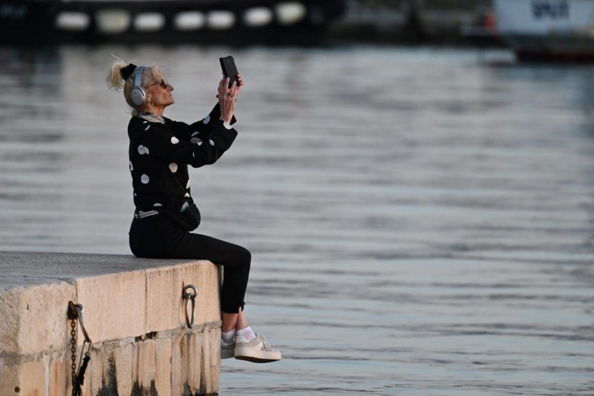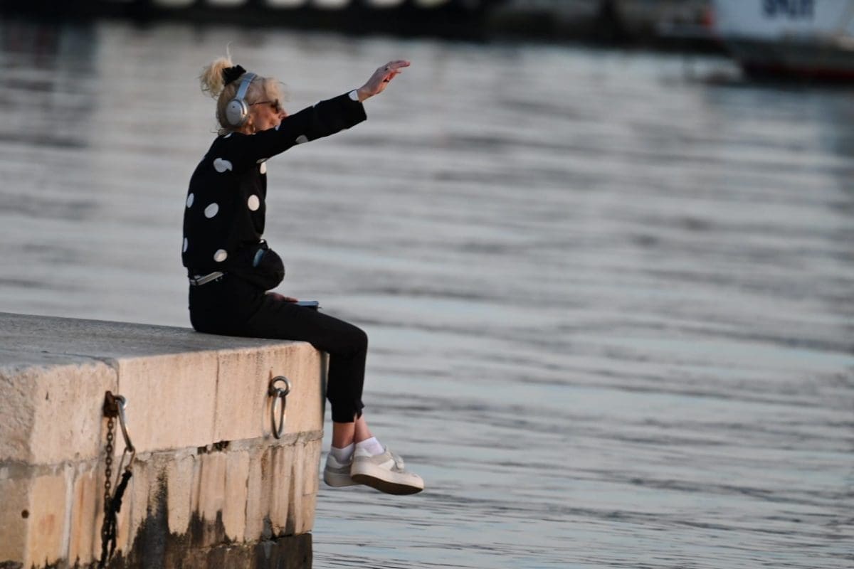 Jedna Splićanka je iskoristila današnji dan za uživanje uz more. Sjela je uz rub splitske Rive, stavila slušalice na uši i potpuno se opustila uživajući u glazbi. Uz to je zaplesala, ali i 'bacila' pokoji selfie. Mnogi prolaznici su je gledali, no ona se nije obazirala na poglede i nastavila je uživati u glazbi i suncu.