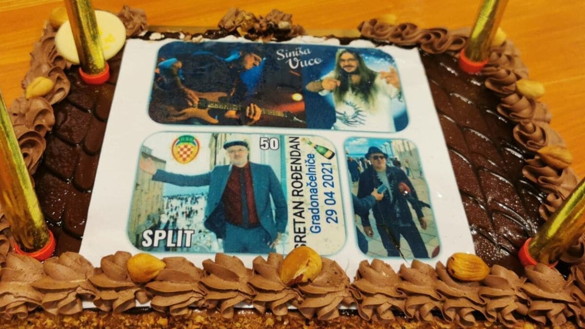 Na velikoj rođendanskoj torti bile su četiri fotografije pjevača iz raznih faza; od one u kojoj je imao dugu plavu kosu do aktualne kada se s balkona iznad Marmontove obraća građanima.