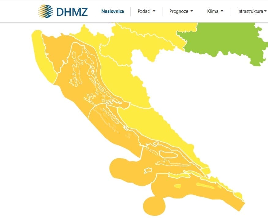 Državni hidrometeorološki zavod za četvrtak je za veći dio Jadrana "upalio" narančasti, drugi najviši stupanj upozorenja za opasne vremenske prilike unutar sustava MeteoAlarm.