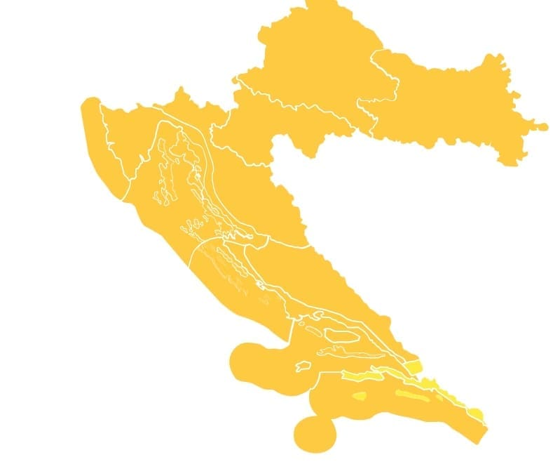 DHMZ je unutar sustava MeteoAlarim za područje cijele Hrvatske odredio narančasti, drugi najviši stupanj upozorenja na opasne meteorološke pojave. Primjerice za splitsku regiju upozorava se na tri stvari: olujne udare vjetra, obilnu kišu i grmljavinsko nevrijeme. Na moru se večeras očekuju udari tramontane blizu 100 km/h!