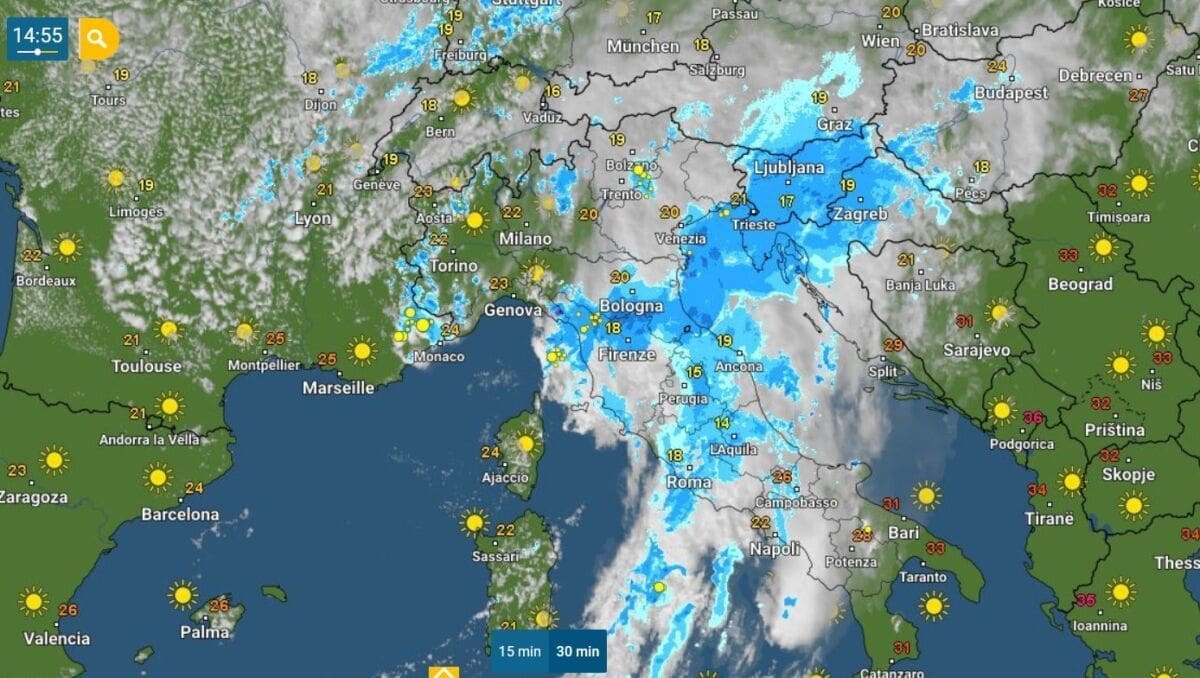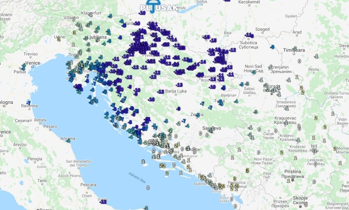 Novi val oborina zahvatio je gotovo cijeli sjeverni i dio srednjeg Jadrana, te središnju Hrvatsku. Prognostički modeli do večeri upućuju na veliku mogućnost grmljavinskog nevremena lokalno na Jadranu, ali i unutrašnjosti. Prolazak hladne fronte preko Dalmacije također će lokalno donijeti izraženo grmljavinsko nevrijeme.