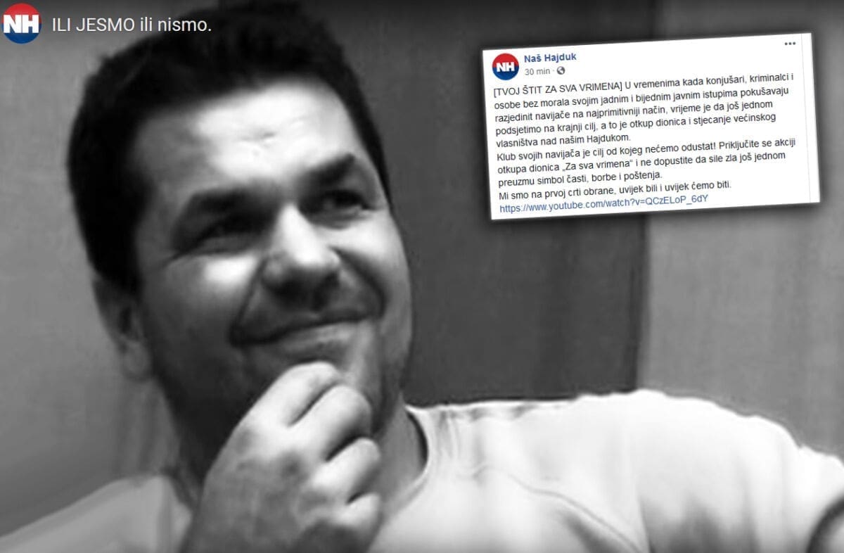 "U vremenima kada konjušari, kriminalci i osobe bez morala svojim jadnim i bijednim javnim istupima pokušavaju razjedinit navijače na najprimitivniji način, vrijeme je da još jednom podsjetimo na krajnji cilj, a to je otkup dionica i stjecanje većinskog vlasništva nad našim Hajdukom.