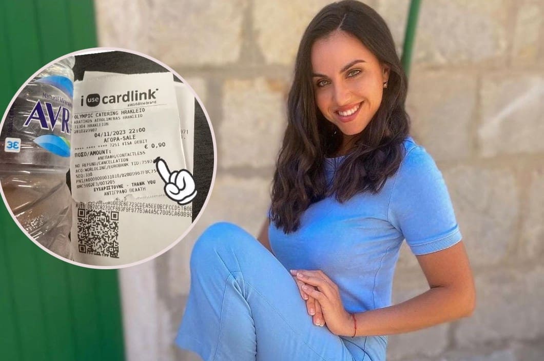 - Dame i gospodo zračna luka Heraklion. Europa i ostatak planete nek se srami. 0.75l 90 centri gdje to ima? Svaka čast - napisala je na Storyju i priložila fotografiju računa.