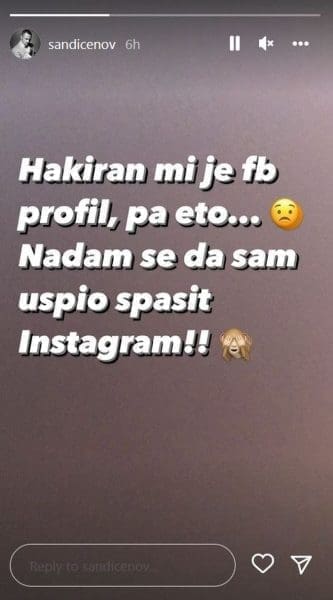 "Hakiran mi je Facebook profil, pa eto...Nadam se da sam uspio spasiti Instagram", napisao je