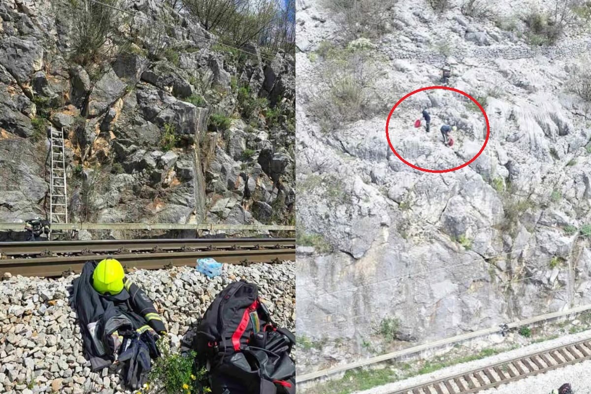- Iako su u svijetu koze poznate kao vrhunski penjači, ovome malcu potrebno je još godina iskustva. Tako je proveo dva dana na stijeni iznad pruge i nije bio u mogućnosti vratiti se u stado.