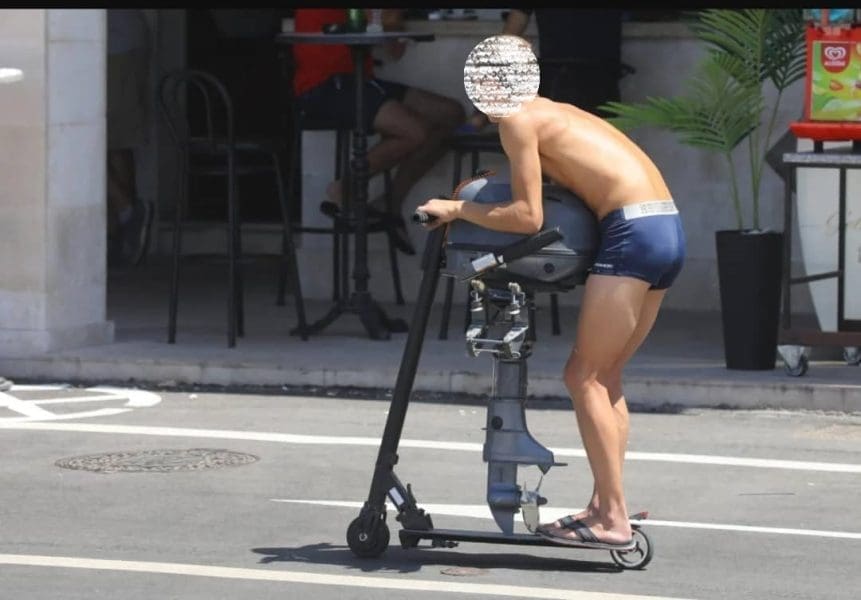 Smiješna i svima nevjerojatna fotografija već dva dana kruži društvenim mrežama. Naime, negdje u Dalmaciji snimljen je muškarac koji na romobilu prevozi motor koji pokreće brodove, barke i ostala slična plovila.