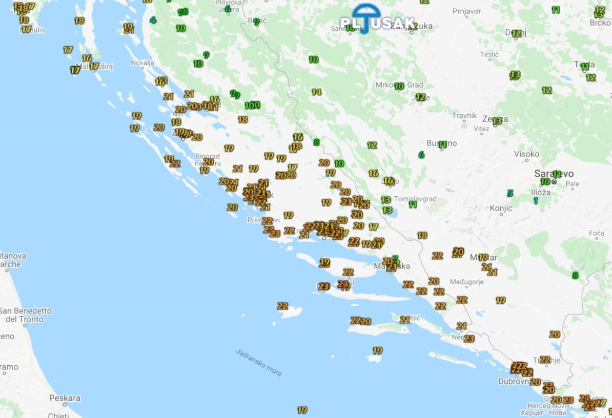 Jučer je u Dalmaciji zabilježen još jedan natprosječno topao dan koji je većini krajeva donio temperature oko 20°C ili više. Najtoplije je bili u dolini Neretve s temperaturama do 25 Celzijevih stupnjeva, a te su vrijednosti blizu rekordno visokih za dio godine.