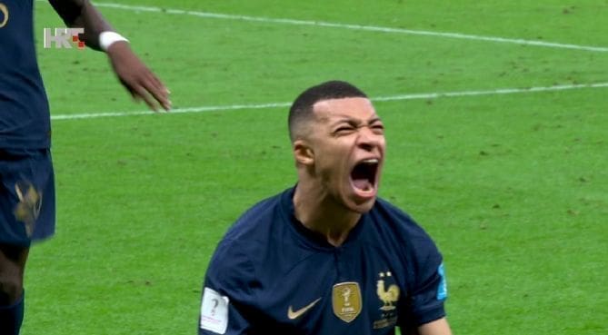 82 minuta. Rezultat je 2:2. Strijelac je ponovno Kylian Mbappe.