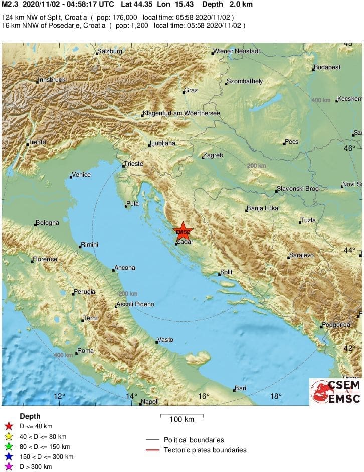 Ovoga puta potres je bio vrlo plitko i dubina mu se procjenjuje na svega dva kilometra.