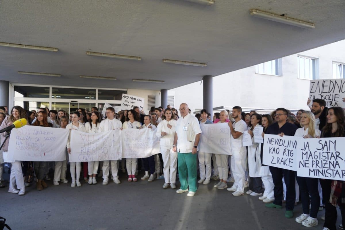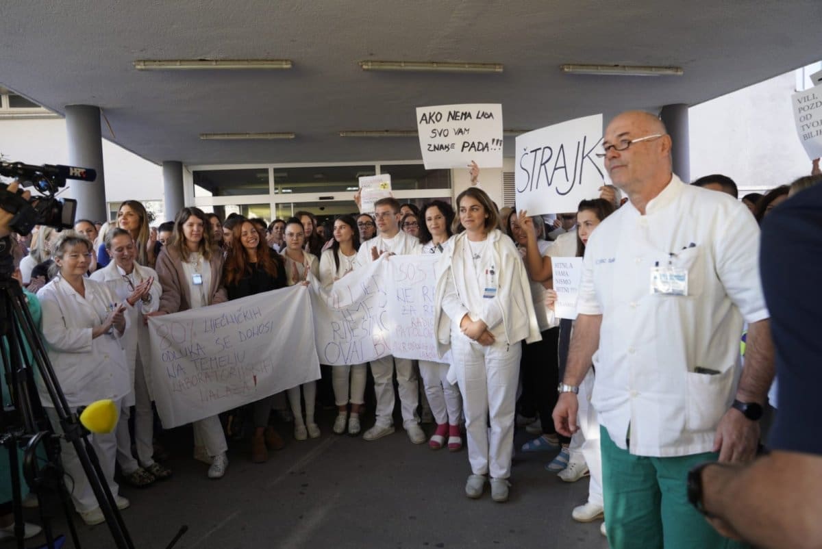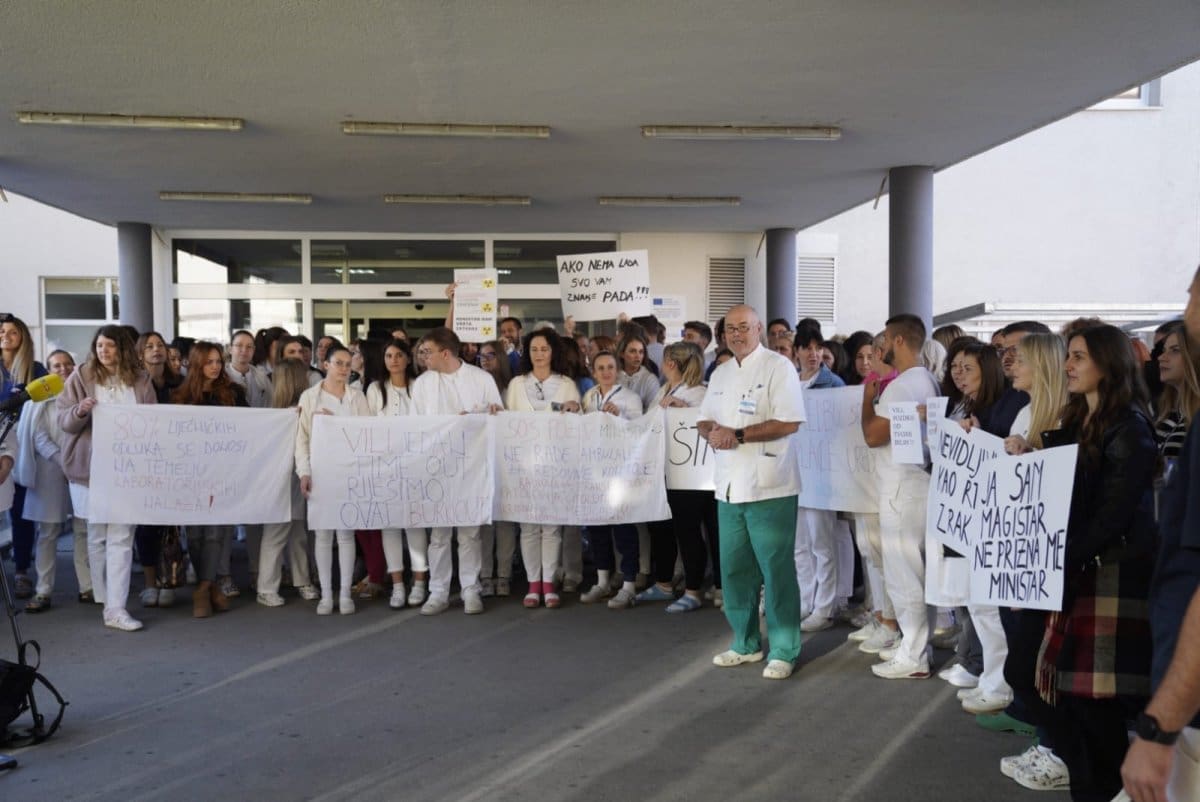 "Htjeli bismo se zahvaliti javnosti na podršci, i ispričati pacijentima što štrajk još uvijek traje. Uredbom koju je Vlada dovela u ožujku, laboratorijski djelatnici su stavljeni na marginu i degradirani. Osim što radimo kroz jutro ambulantne i bolničke pacijente, tu smo 24 sata za pacijente s OHP. Tu je važno napomenuti da tada nalazi trebaju izaći unutar sat vremena", kazala je Andrea Mišković, zdravstveno-laboratorijski tehničar Centralnog laboratorija.