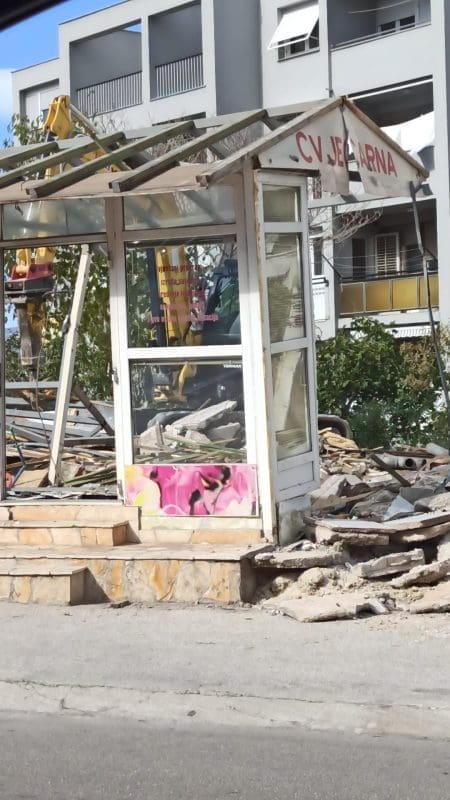 Kako smo doznali, jedan od vlasnika trafike na splitskom Zagorskom putu je također uklonio svoj nelegalni objekt, a taj prizor je snimio i naš čitatelj koji se našao na licu mjesta i gdje je vidio kako bageri ruše trafiku, tj. nelegalni objekt.