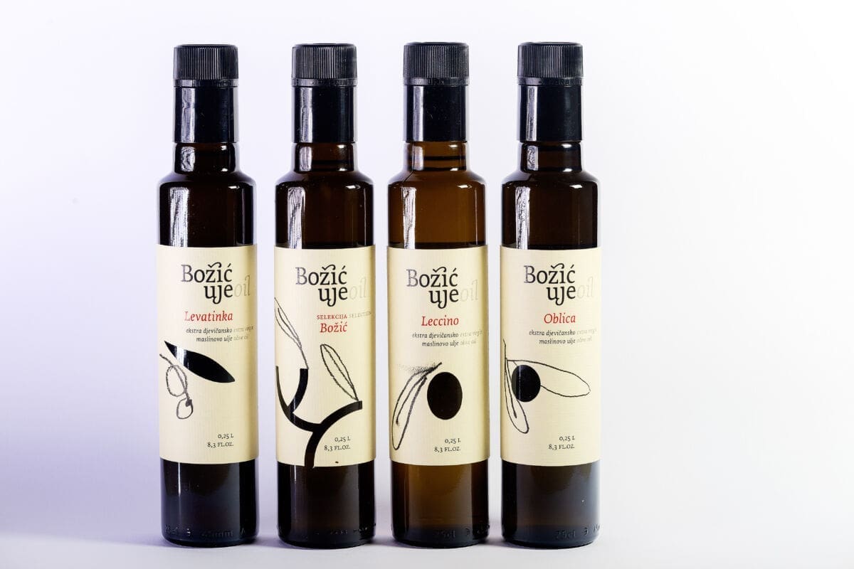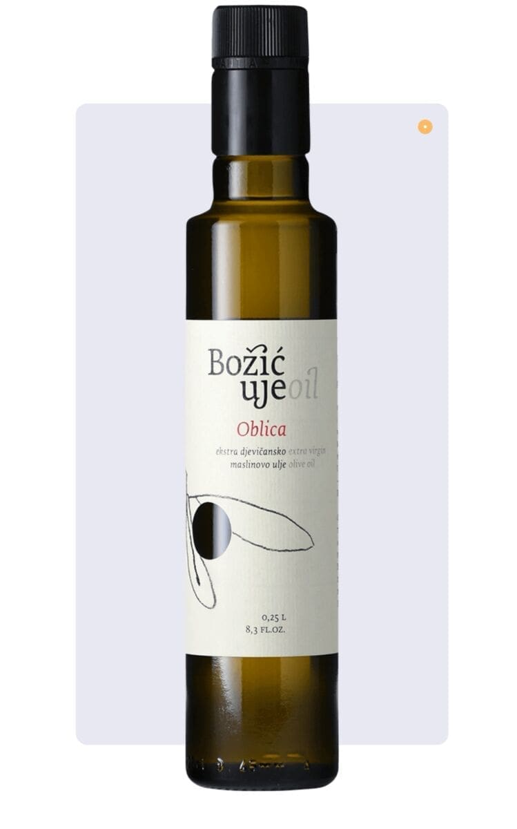 Božić ulje prožeto je tradicijom, marljivošću, ljubavlju i stručnošću njihove obitelji. Visoki standardi i strast prema hrani nadahnjuju nas za proizvodnju maslinovog ulja izvrsnog ukusa, napravljenog od samo najboljih sastojaka. Na ovogodišnjem natjecanju zlatnu nagradu je odnijelo ulje Oblica kojeg odlikuje izrazita aroma i okus ploda masline. Ulje ima blago začinjen i gorak okus, s izrazitom intenzivnom slatkoćom. Srebrna medalja ide za Selekcija Božić koja se sastoji od visokokvalitetnih i dobro odabranih sorti maslina. Može se pohvaliti skladnim mirisima i okusima. Vrhunsko ulje je zlatnozelene boje, sadrži aromatično bilje i svježeg je mirisa. Umjereno je gorka i pikantna.