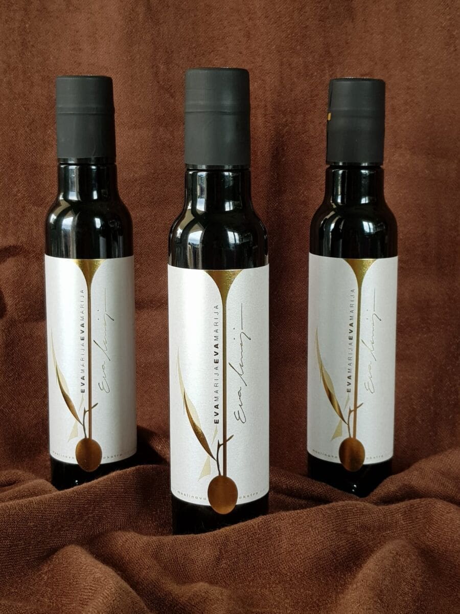 Zlatna medalja za ulje Eva Marija, sorte levatinka obilježila svježa voćnost, arome svježe trave, zelene jabuke, banane i tropskog voća. Okusom dominiraju bademi, artičoka, lišće masline i zelena rajčica. Ulje ima uravnoteženu i ugodnu gorčinu i oštrinu, složenu aromu lisnatog povrća i lišća rajčice. Ulje je usklađeno i savršeno uravnoteženo.